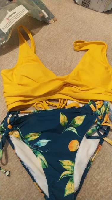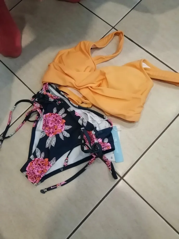 Размер бикини довольно мал. Обычно у меня есть Размер s или m. Я заказывал Размер m, но я думаю, что размер L был бы лучше. Вы можете немного увеличить бикини благодаря эластичным веревкам