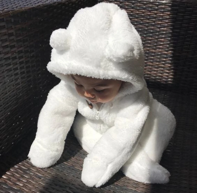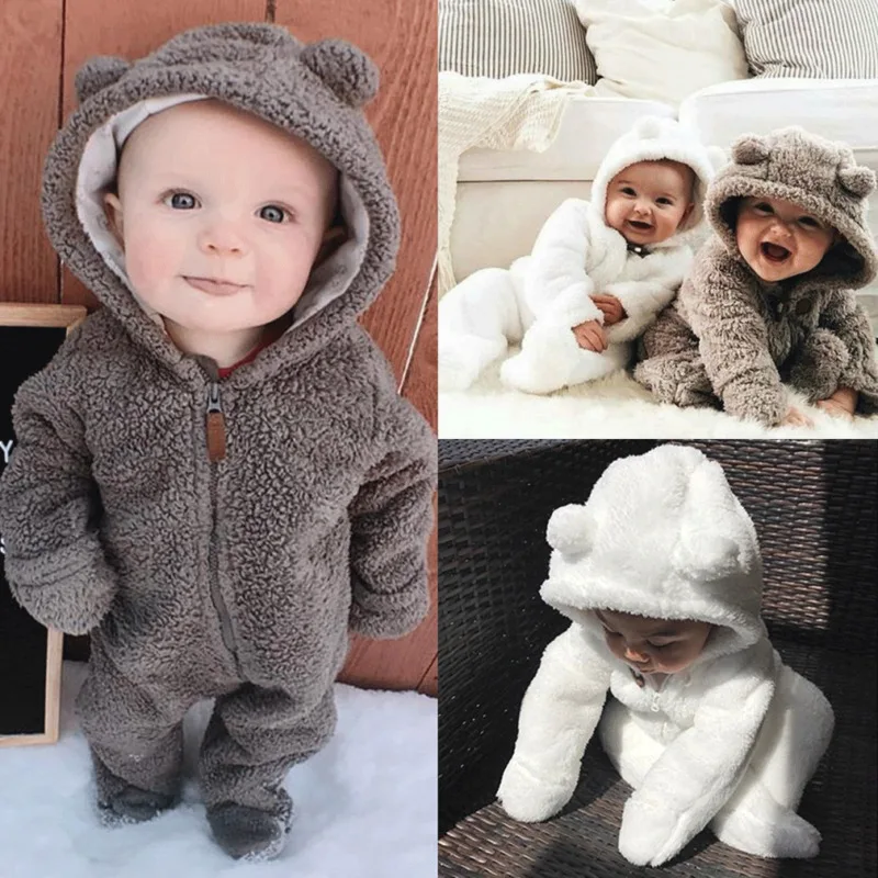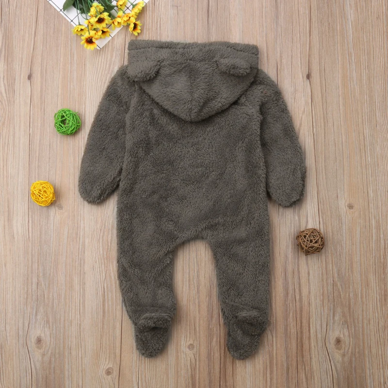 Пушистый комбинезон с капюшоном для новорожденных девочек и мальчик...