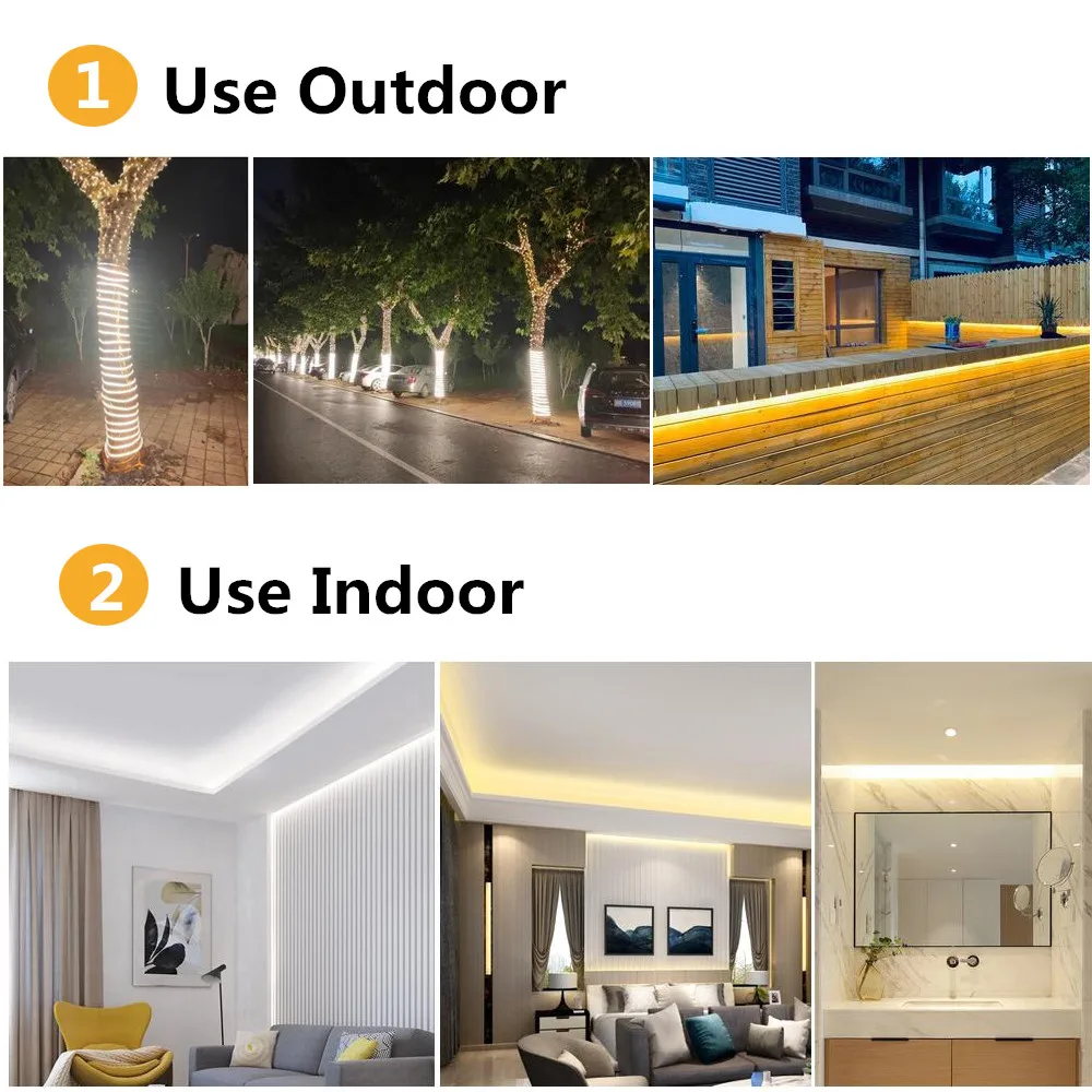 ◆ Примечание: светодиодный рулон ленты данного типа подключается непосредственно к сети с напряжением 220-240 В через выпрямительный кабель.◆ Светодиодный фонарь 220 В подключается непосредственно к сети 220-240 В. Поэтому они являются гибкими и очень просты в установке. Они могут быть установлены как в помещении, так и на открытом воздухе, потому что они имеют защитный чехол, который изолирует их от природных явлений, таких как влага или пыль.Обратите внимание:Все светодиодные полосы светильник водонепроницаемый, но источник питания Великобритании не являются.Все светодиодные полосы светильник с зазорами, которые можно разрезать каждые 1 метр, пожалуйста, обратите внимание.