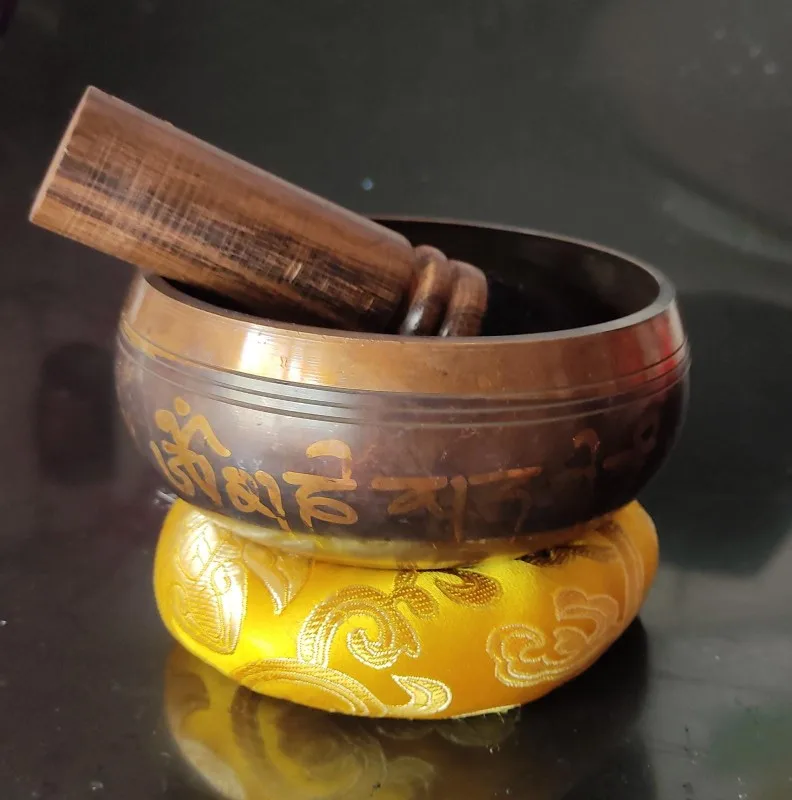 Звуковая чаша непальского Будды 1 комплект, тибетская Поющая чаша, чаша для йоги, звуковая чаша Будды, санскрит, бронзовая аксессуары с Буддой