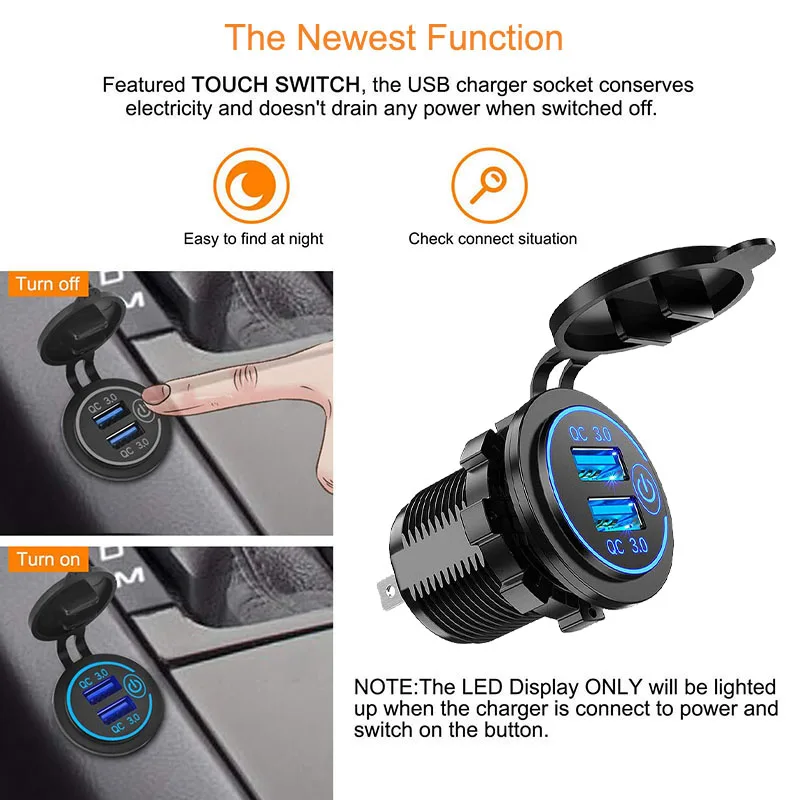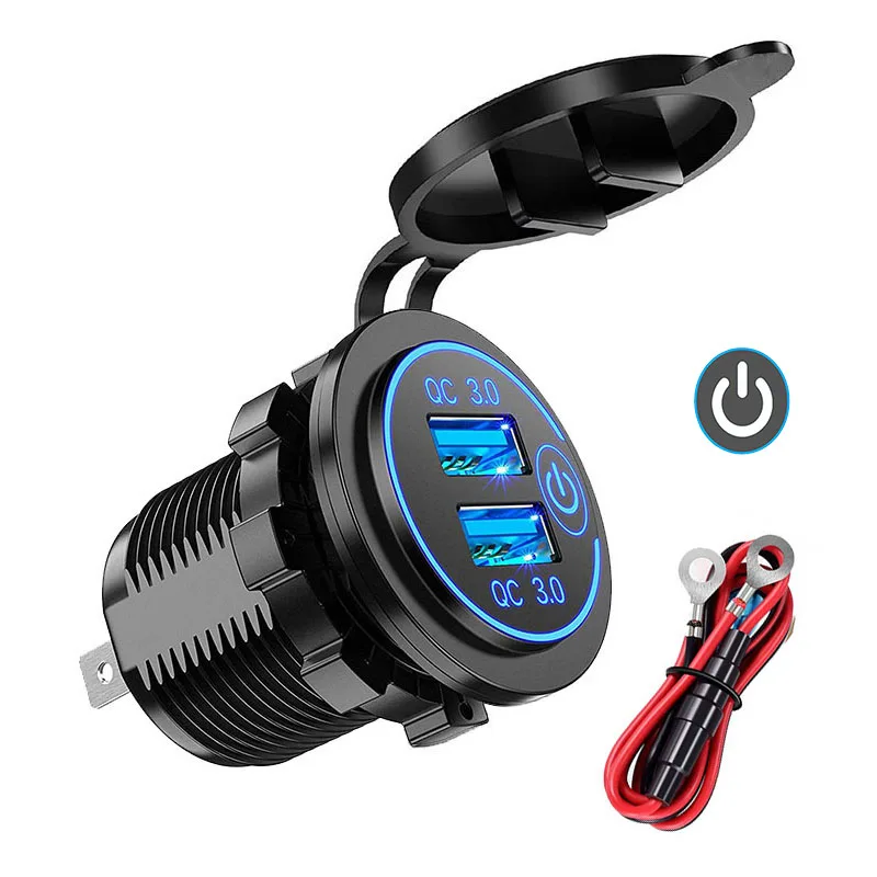 Автомобильное зарядное устройство с двойным USB-разъемом для быстрой зарядки 3,0, водонепроницаемое, 12 В24 В, QC3.0, USB-разъем для быстрой зарядки с сенсорным переключателем D5