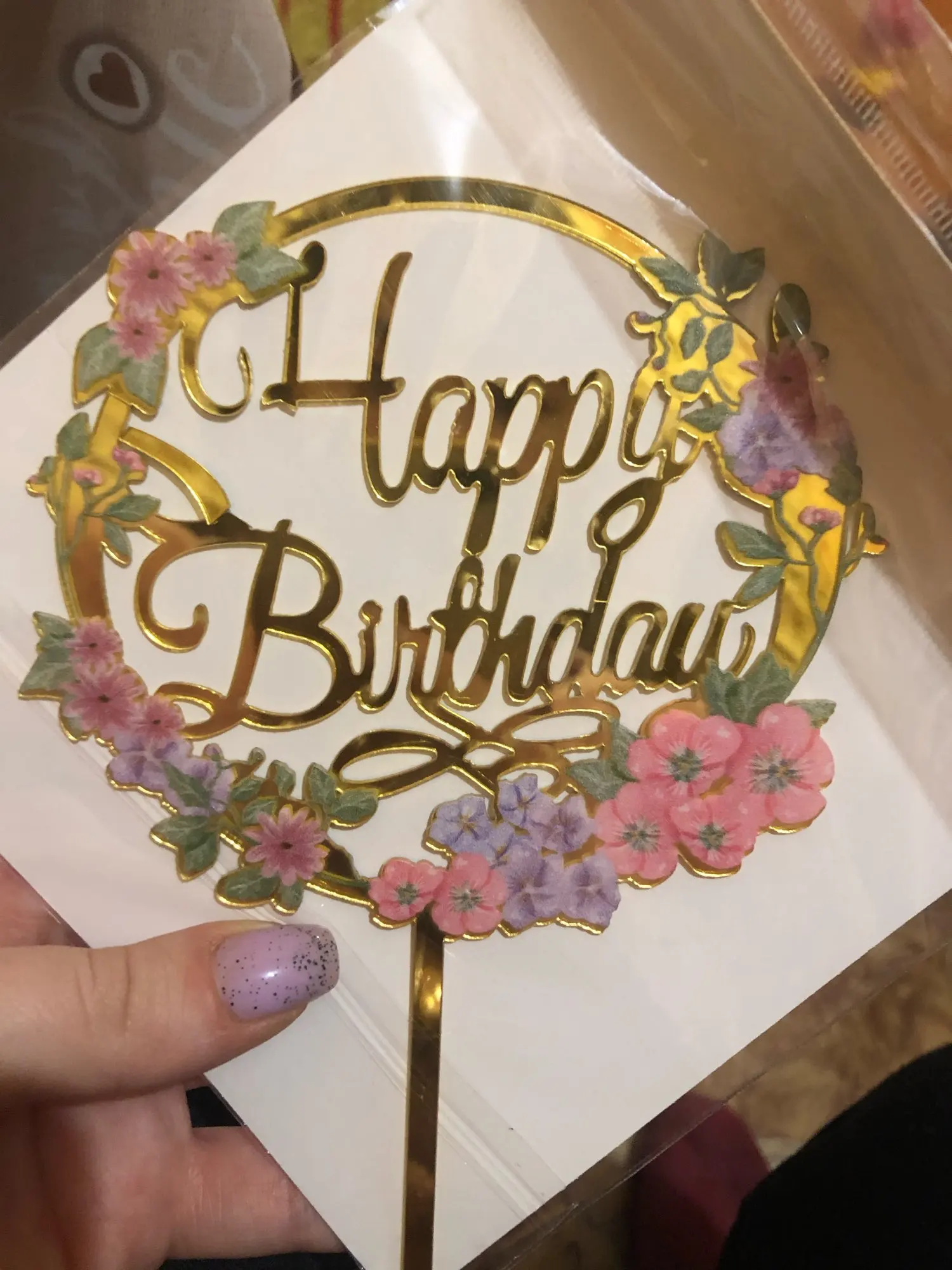 Топпер для торта детский, из акрила, с цветами золотого цвета, топпер для торта С Днем Рождения, украшения для торта для вечеринки