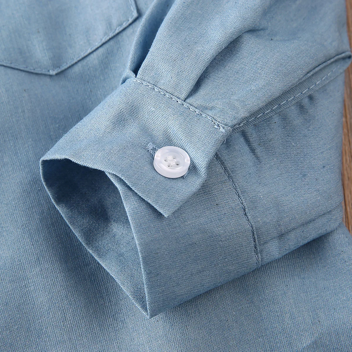 Детская одежда для девочек буквы печатный рисунок джинсовая рубашки для мальчиков детские рубашки с длинными рукавами и отложным воротником для девочки, детская одежда, для детей ясельного возраста, с карманами, осень, джинсы Повседневная рубашка Топ на 2-7 лет