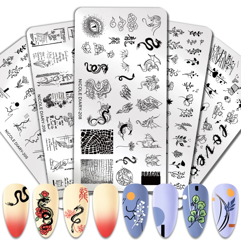 Пластины для стемпинга ногтей с изображением дракона, цветов, животных, из нержавеющей стали