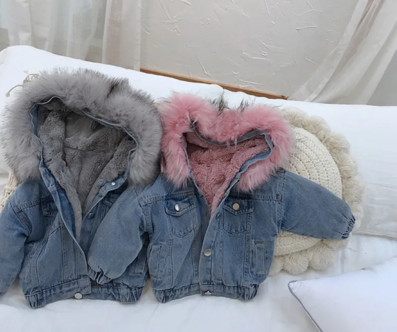 Название продукта:Детские пальто для девочек; Джинсовые куртки с меховым воротником; Зимняя детская одежда