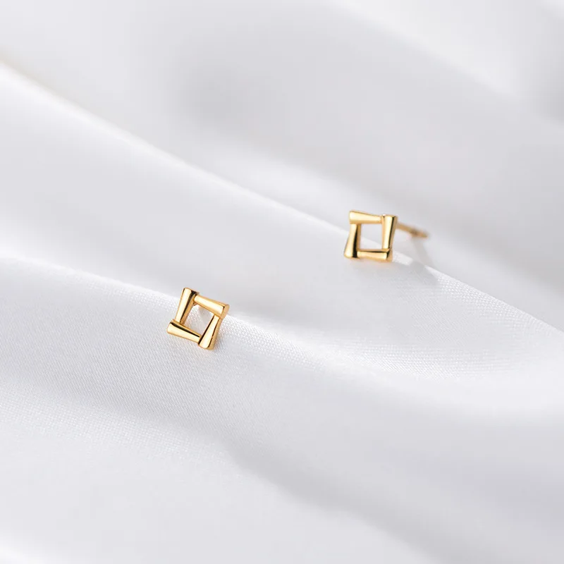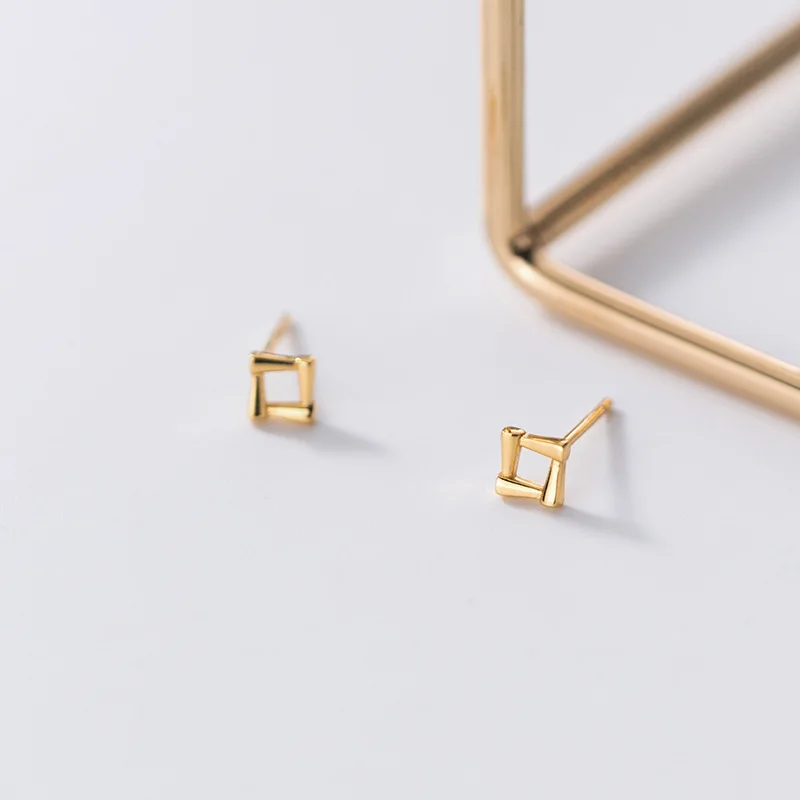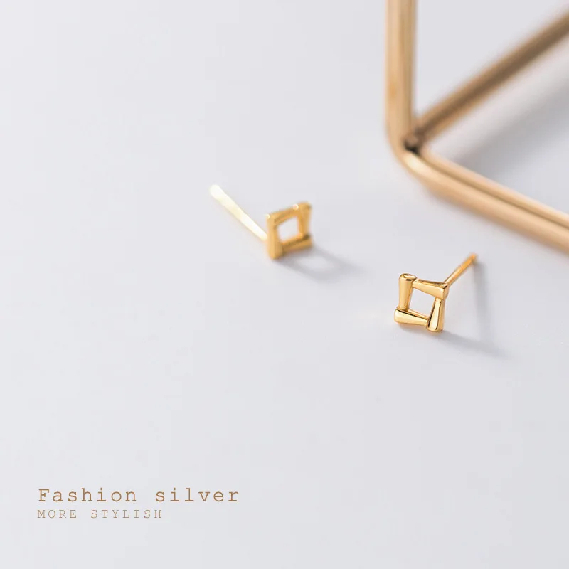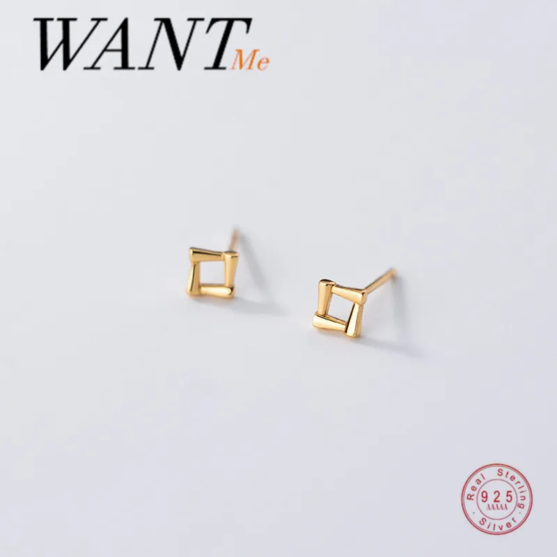 Минималистичные геометрические золотистые квадратные серьги-гвоздики WANTME для женщин, Настоящее серебро 925 пробы, ювелирные изделия для студенток и девушек, подарок
