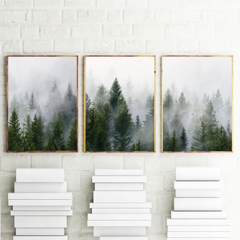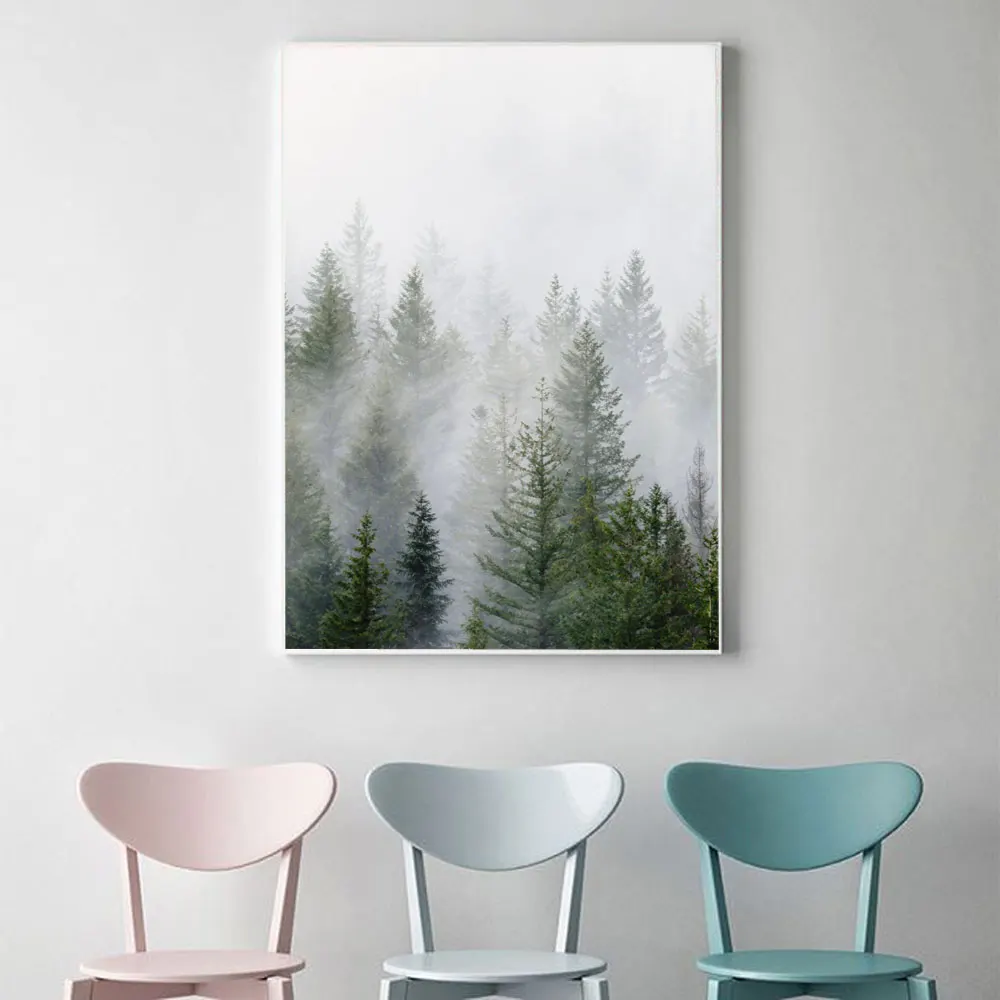 Постер гор, Туманный лес, природный пейзаж, скандинавские картины, Современное украшение, пейзаж, принты, настенная Картина на холсте