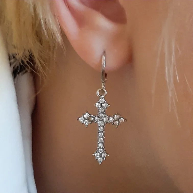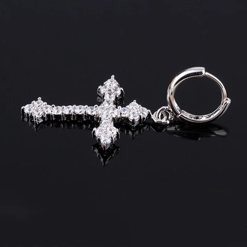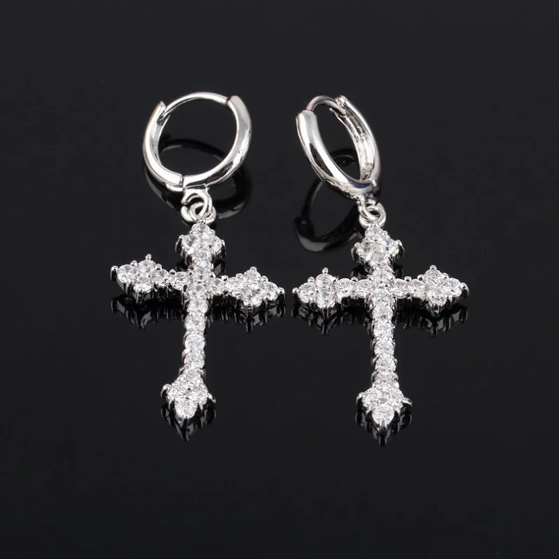 Модные серьги в виде креста со стрелками, женскиемужские красочные серьги в стиле хип-хоп с кристаллами из циркония для рок вечерние, подарок на день рождения