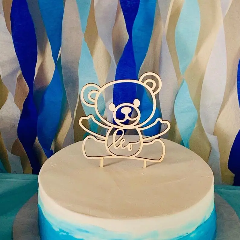 Медвежонок Baby Shower торт Topper с именем на заказ, деревянный медведь на день рождения торт Topper, персонализированная вечевечерние НКА материалы для украшения тортов