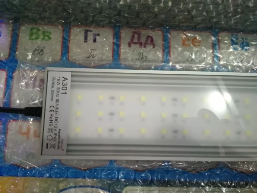 Нержавеющая подставка: 22x11см.Материал: полиметилметакрилатДержатель: 11 мм, подходит для бака толщиной max 11 мм.Входная мощность: переменный ток 100 - 240 В, 50-60 ГцЛисты подставки: ш60xд5xВ50 ммЦветовая температура: около 8000 KСветодиодный Дов: 5730Вилка: вилка стандарта США/ЕСДлина модели светильника, мощность светодиода, число люменA201 20 см 12 Вт 36 шт. 1800A251 25 см 15 Вт 45 шт. 2350A301 30 см 18 Вт 54 шт 2800A351 35 см 21 Вт 63 шт 3450A401 40 см 24 Вт 72 шт. 3850A451 45 см 27 Вт 81 шт. 4350A501 50 см 33 Вт 99 шт. 4800