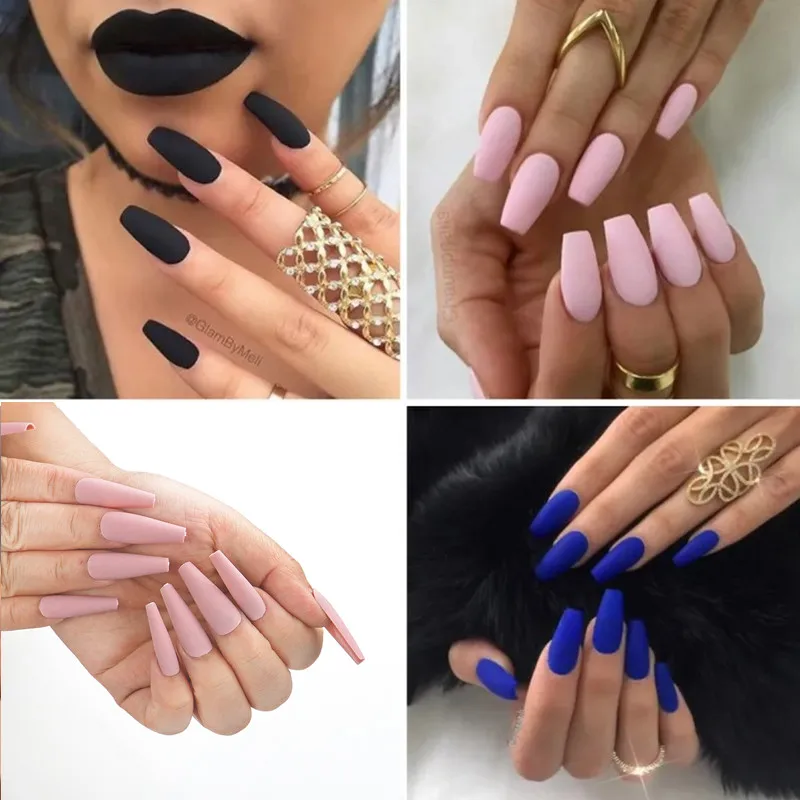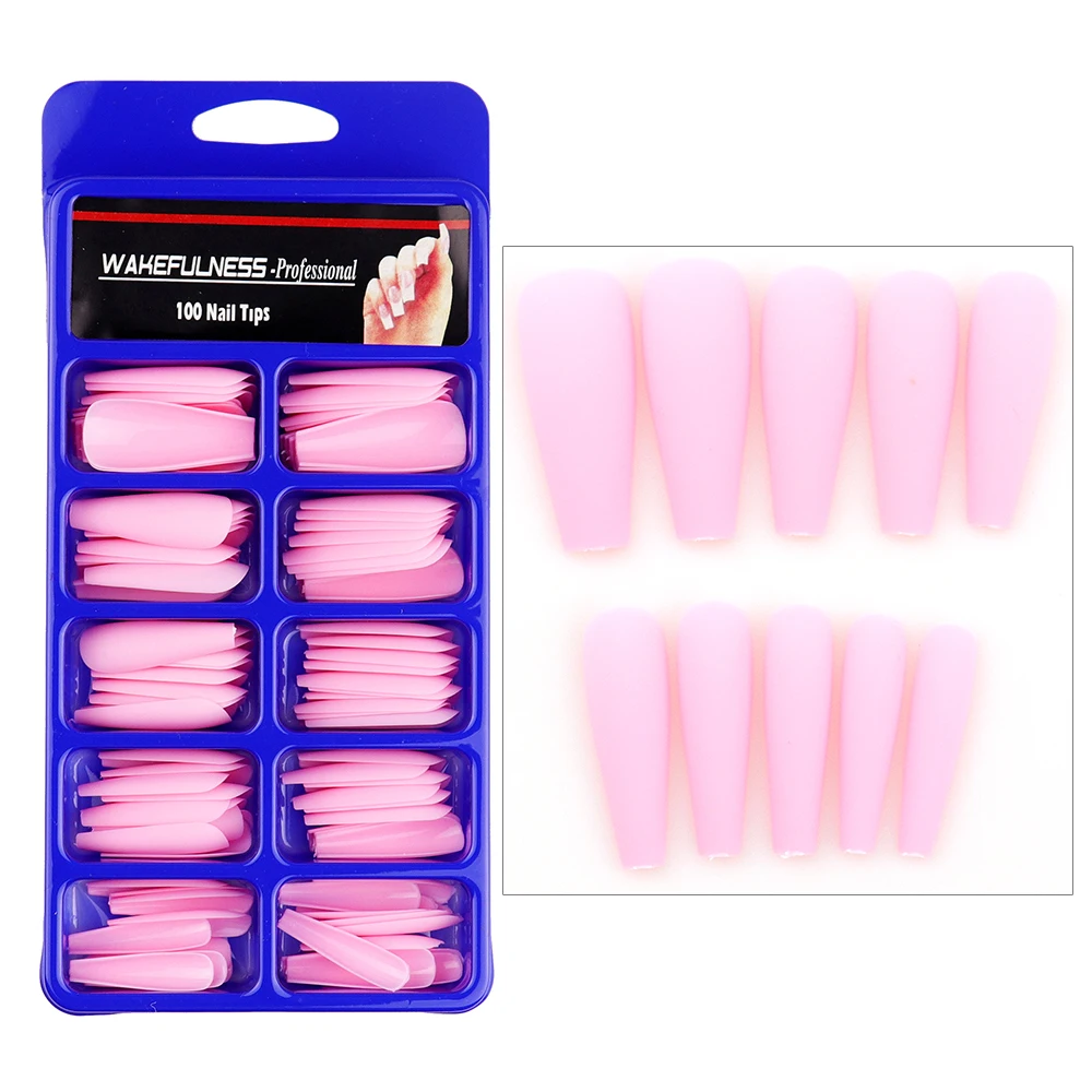 Удивительная матовые ногти пресс для ногтей, для нанесения с помощью клея 100 Типс Non-Блестящий лак для ногтей высокое поставщики сырья для модного цвета черный, красный винный новой красоты гроб