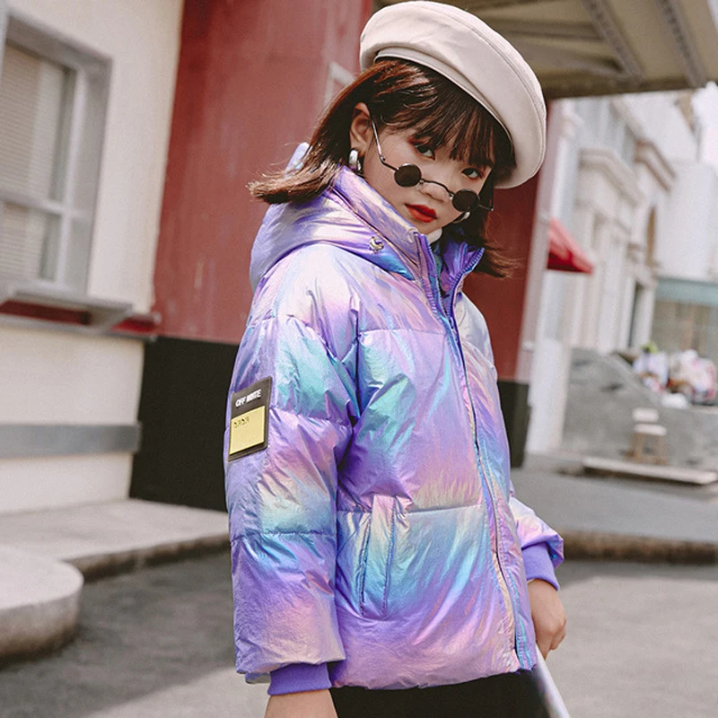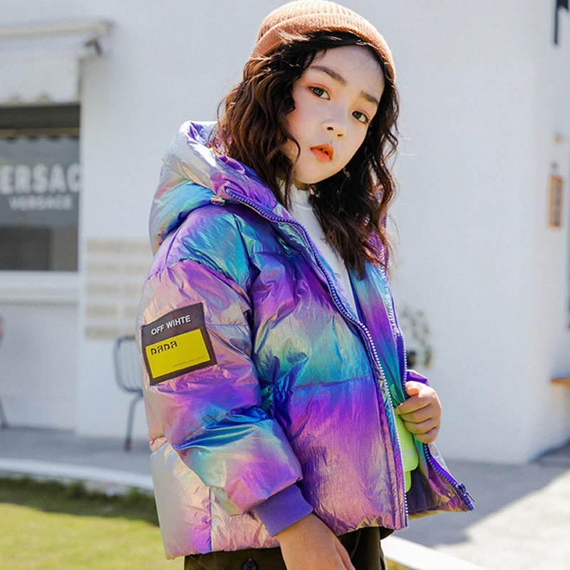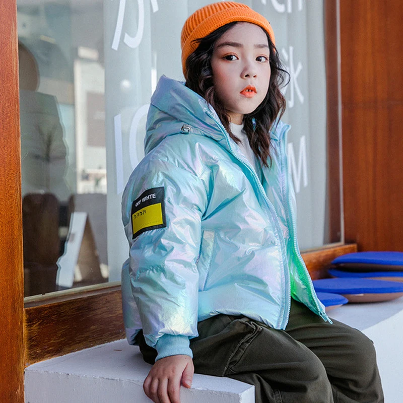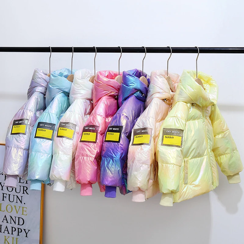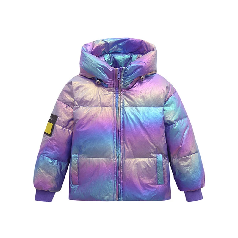 Детский Зимний пуховик, зимний комбинезон для мальчиков, блестящая ветрозащитная парка, пальто, верхняя одежда с капюшоном для мальчиков и девочек, 7 цветов, 100-150 см