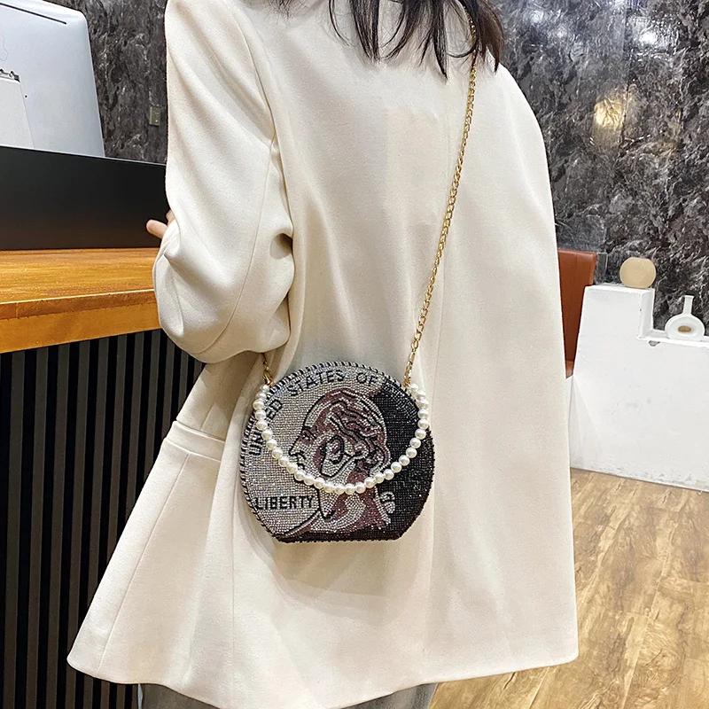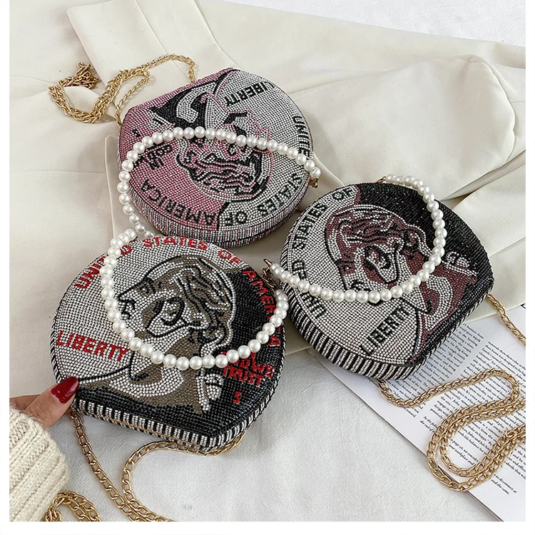 Роскошная вечерняя вечерние со стразами и монетницей, клатч, сумка, кошельки и сумочки для женщин, вечерняя сумка с жемчужной ручкой, сумка на плечо с цепочкой