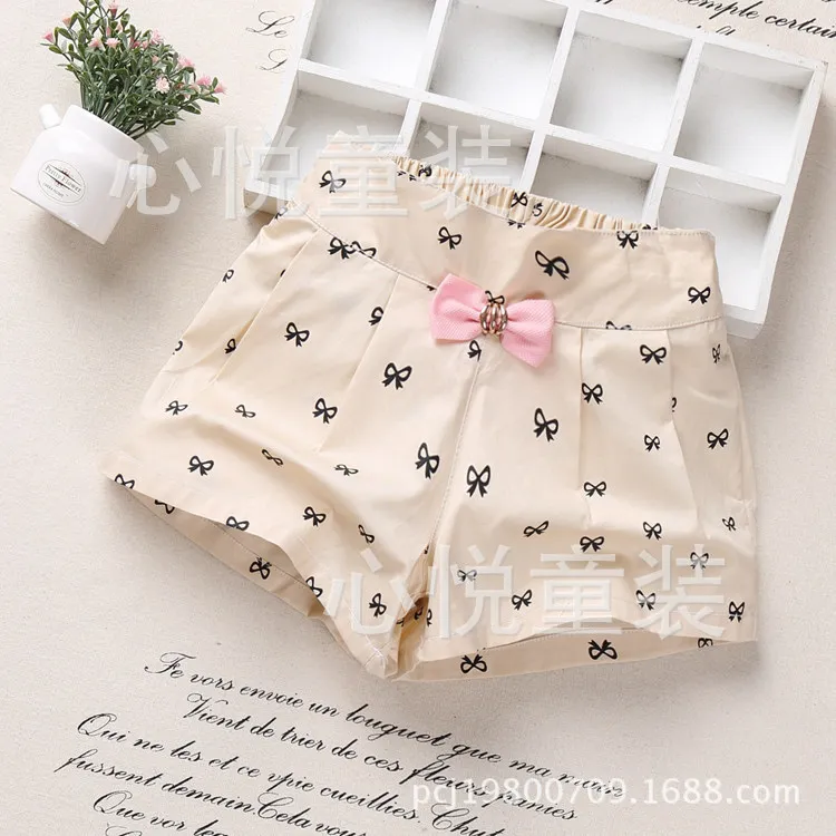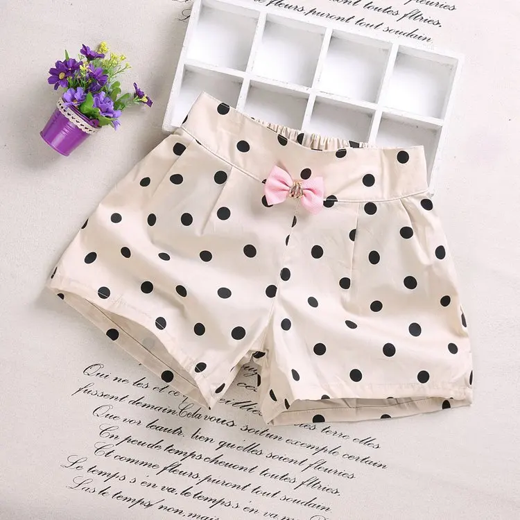 Летнее Детское платье для маленьких девочек, Футболки с бантом средние детские свободные повседневные брюки, детские костюмы на девочек в повседневном стиле От 3 до 7 лет шорты для девочек из хлопка; Модные резиновые сапоги с рисунком в горошек шорты 7164 01