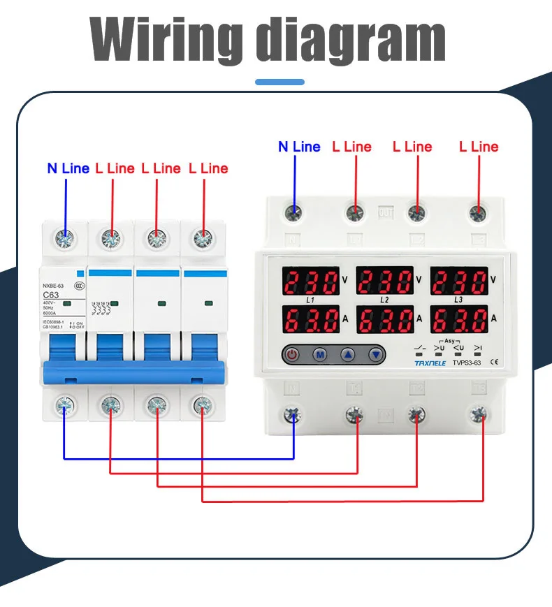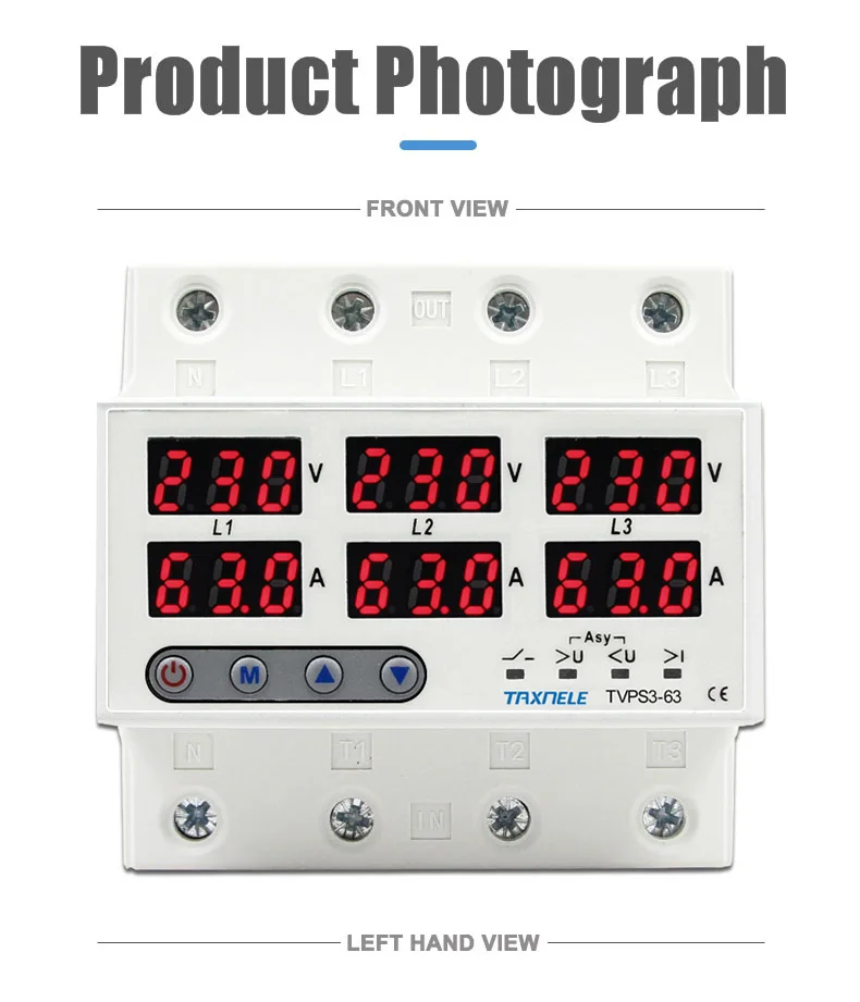 3 трехфазный ток напряжения защита реле 63 а 60 А 220 В 3P + N реле перенапряжения Регулируемый ограничитель тока