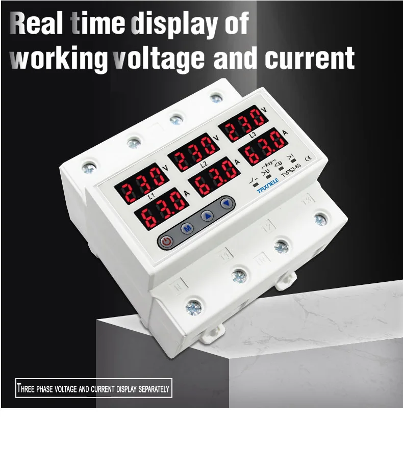 3-фазный вольтметр-Амперметр 380 В на Din-рейку, регулируемый предельный ток от перенапряжения и пониженного напряжения, защитное реле для монитора