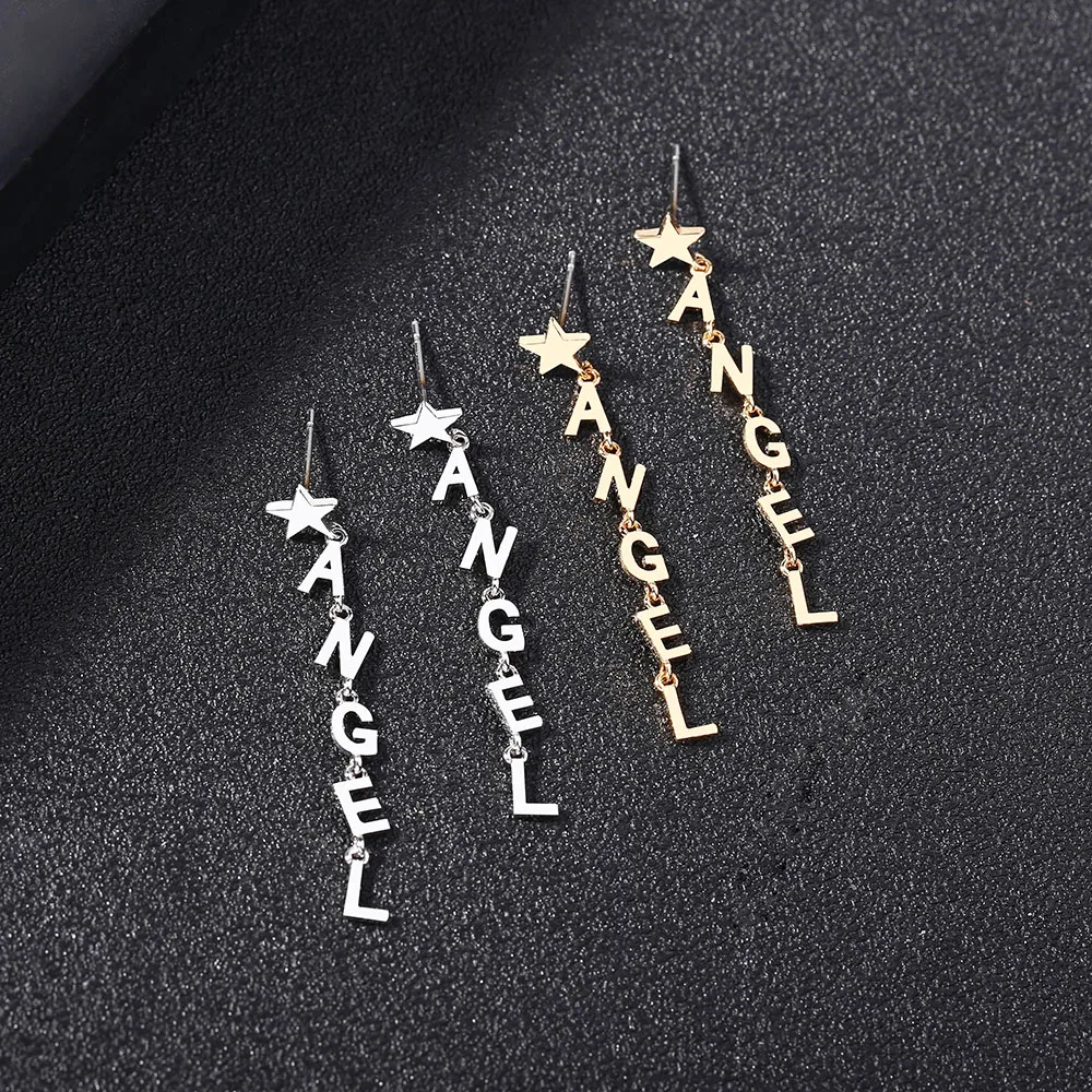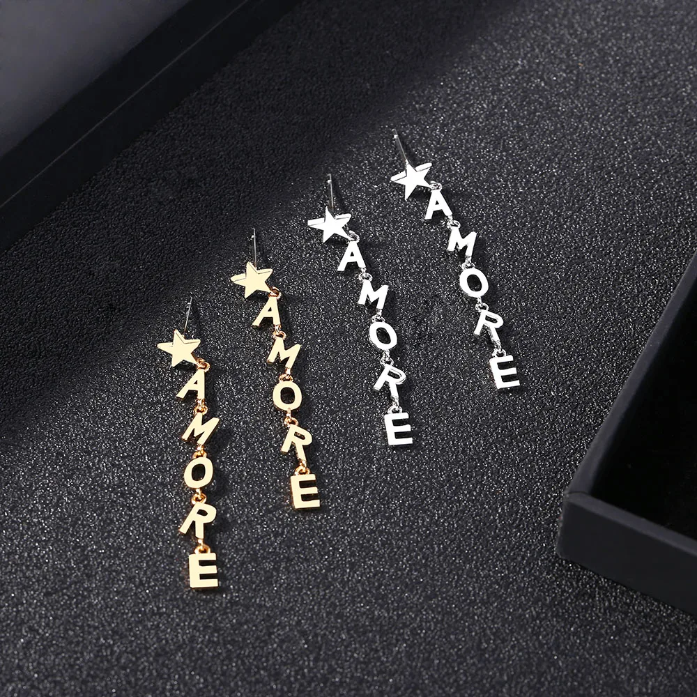 Женские серьги-подвески из нержавеющей стали, с кисточками и надпис...