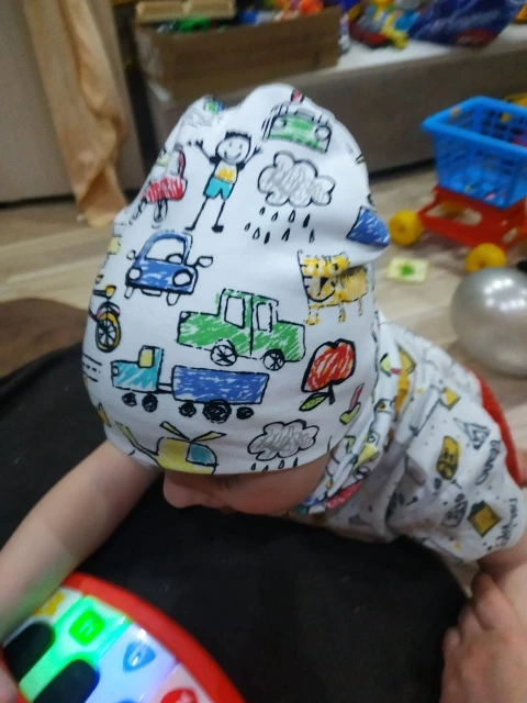 Заказ приехал в Харьков за 18 дней, что довольно быстро. Ткань приятная, очень мягкая, тоненькая, на небольшие холода. Шапка по размеру на ребёнка 2 года села отлично, даже с запасом. Все цвета очень красивые. Заказом довольна.
