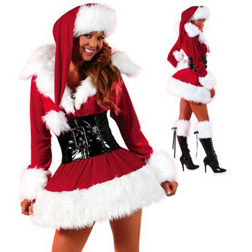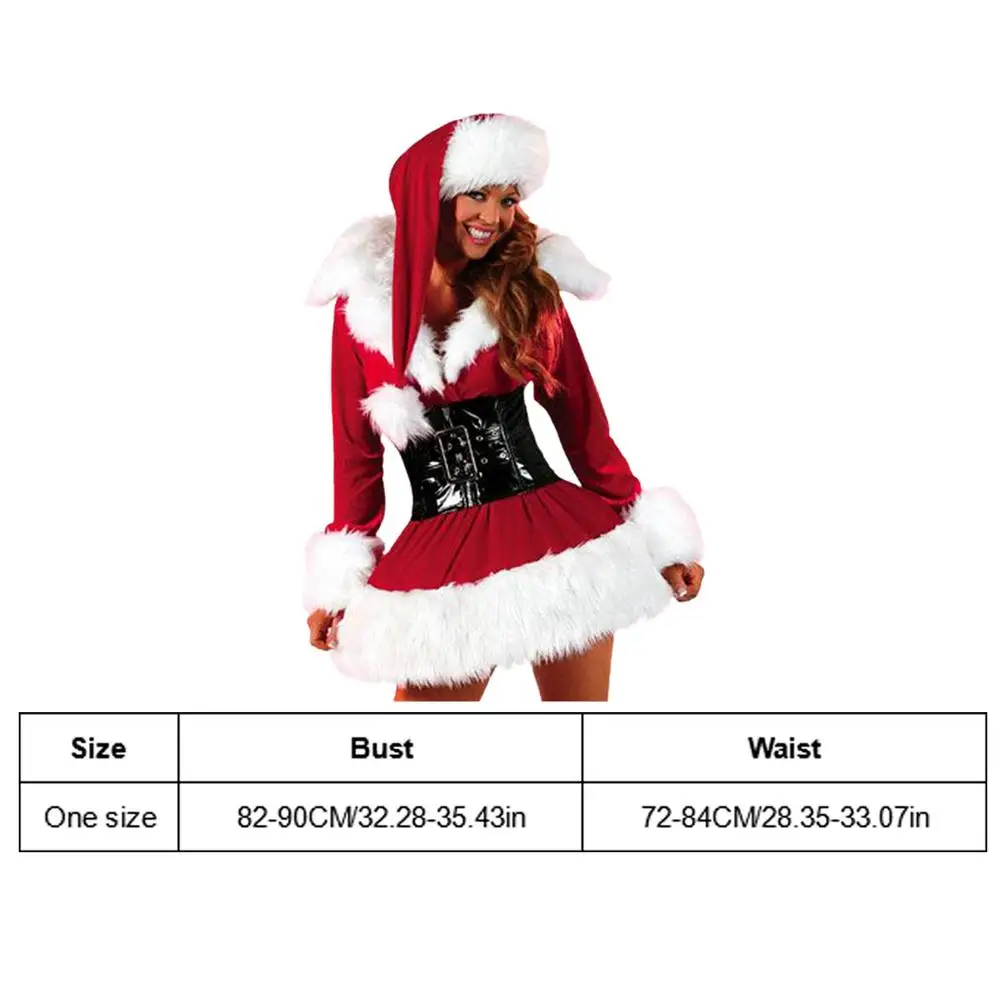 Женский костюм Санта-Клауса, роскошное мини-платье с шапкой и поясом, костюм Санта-Клауса, Рождественский костюм с красным лацканом для косплея и Рождества
