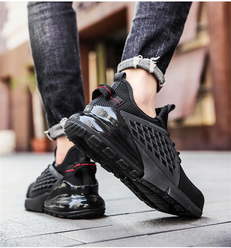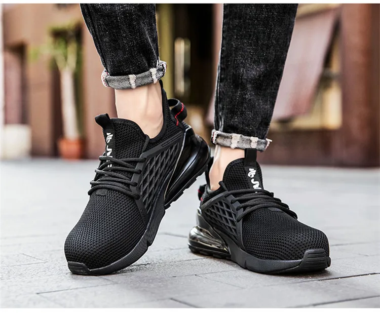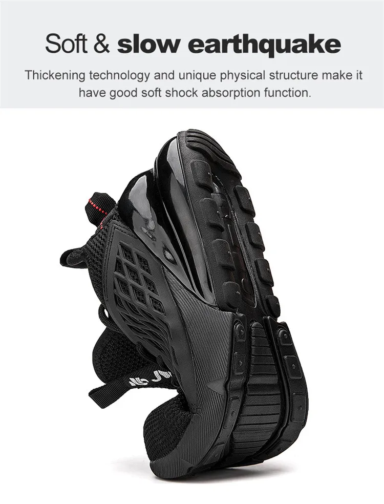 Мужская защитная обувь для тенниса, черная амортизирующая обувь на воздушной подушке со стальным носком, нескользящая рабочая обувь, неразрушаемые ботинки