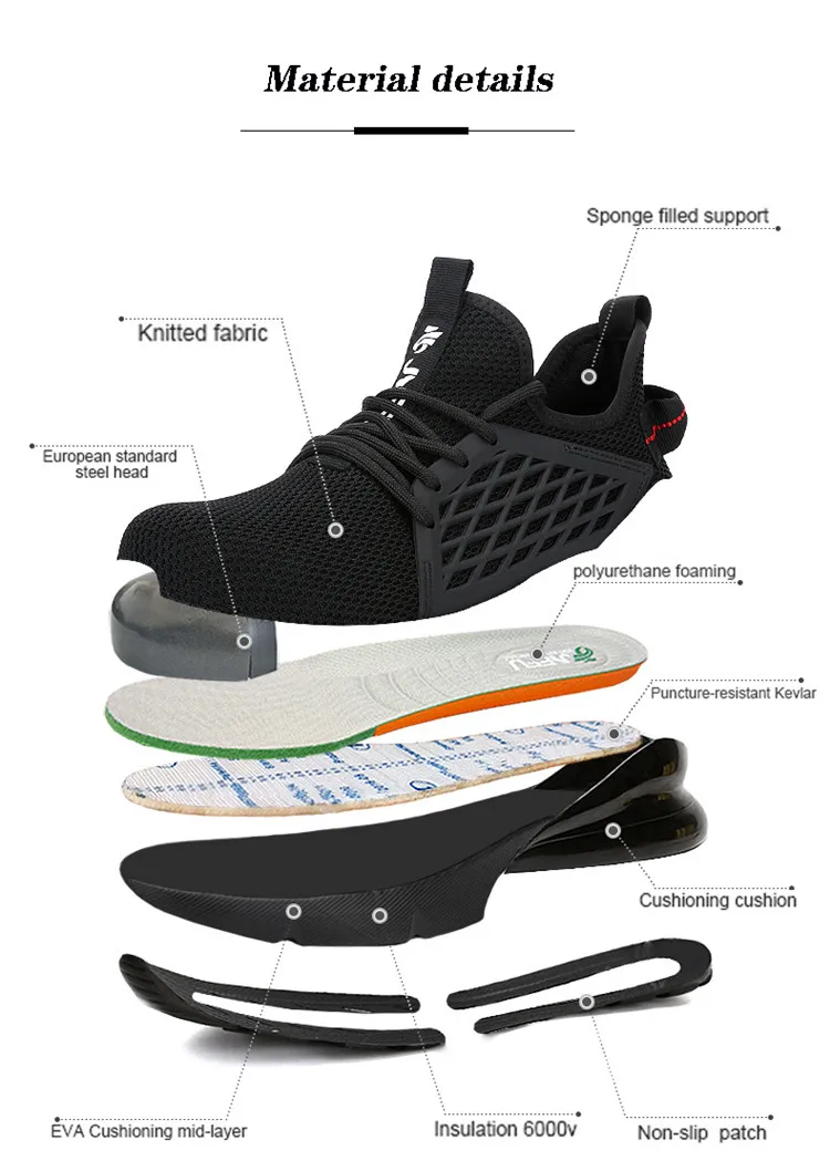 Летняя безопасная теннисная рабочая обувь, Мужская защитная обувь с...