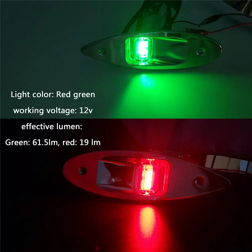 1 светодиодный красных и зеленых светодиодов с утапливаемым креплением, светодиодный ные боковые навигационные огни для лодок, домов на колесах, 12 В, светодиодный стественный белый светодиод 5050, 0,5 Вт, нержавеющая сталь