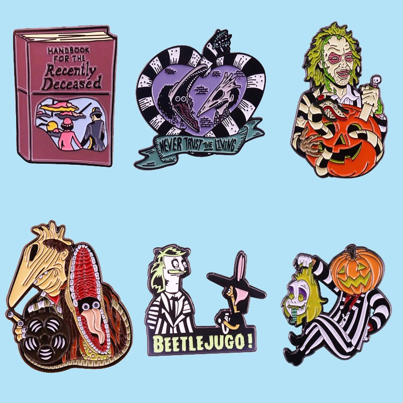 Эмалированная булавка и брошь Beetlejuice для недавно умерших эмалевых подвесок в готическом стиле на Хэллоуин, коллекционные подарки для фанатов