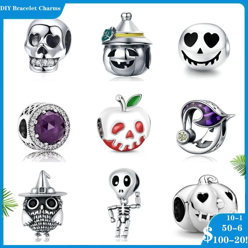 2021 Новый Хэллоуин ужас демон Тыква Череп Дьявол оригинальный Pandora Шарм Подвеска Серебро 925 браслет для женщин Сделай Сам Изготовление ювелирных изделий