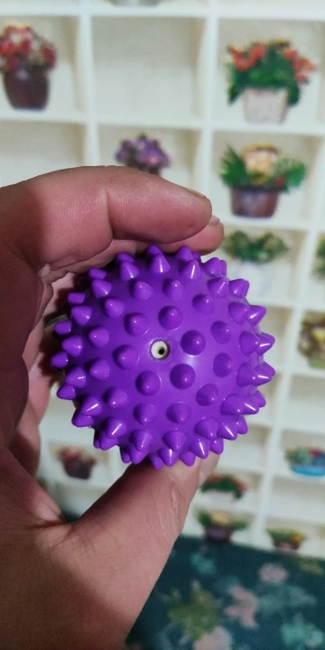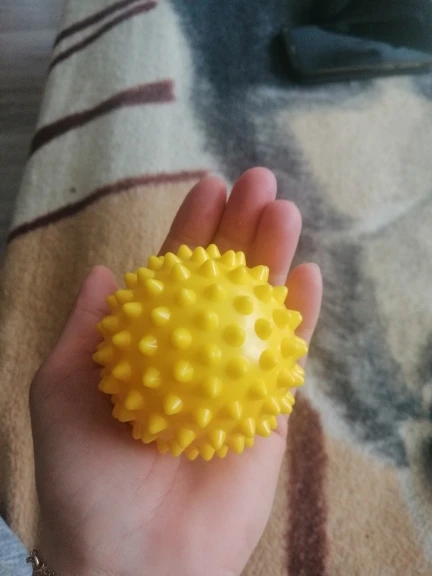 нормальный жёсткий массажный мяч. Я думал он будет мягче, из резины или силикона. А он пластиковый, гремит когда катится