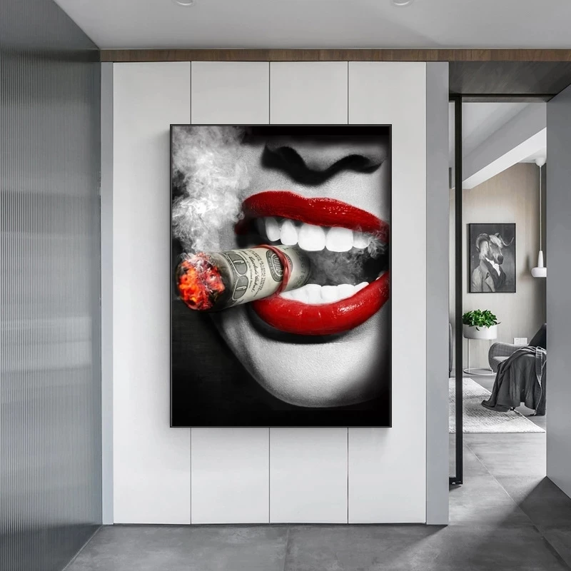 Картина Женская курительная на холсте сексуальные красные губы крутая плакаты-портреты и принты Куадрос Настенная картина для гостиной домашний декор