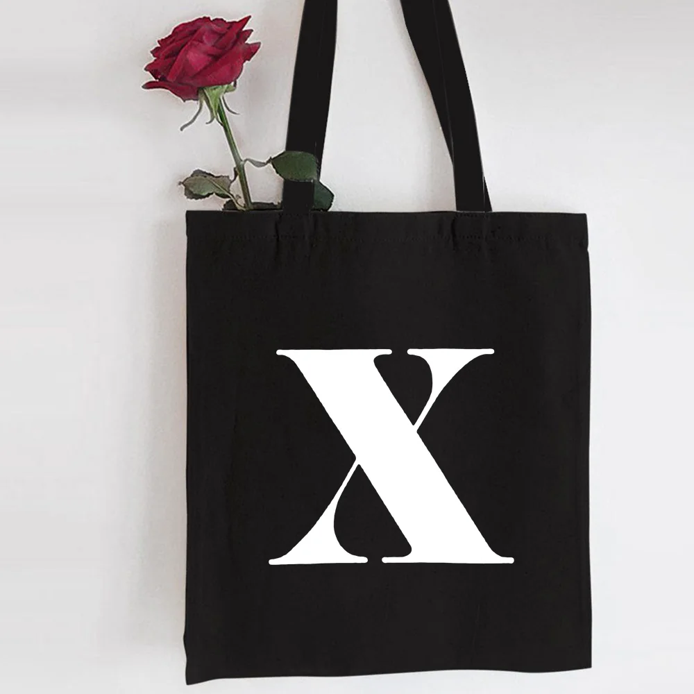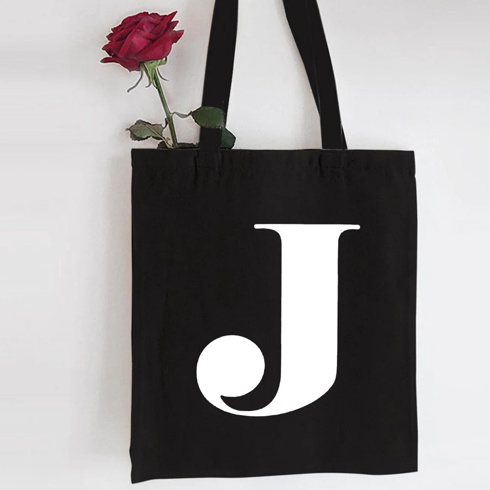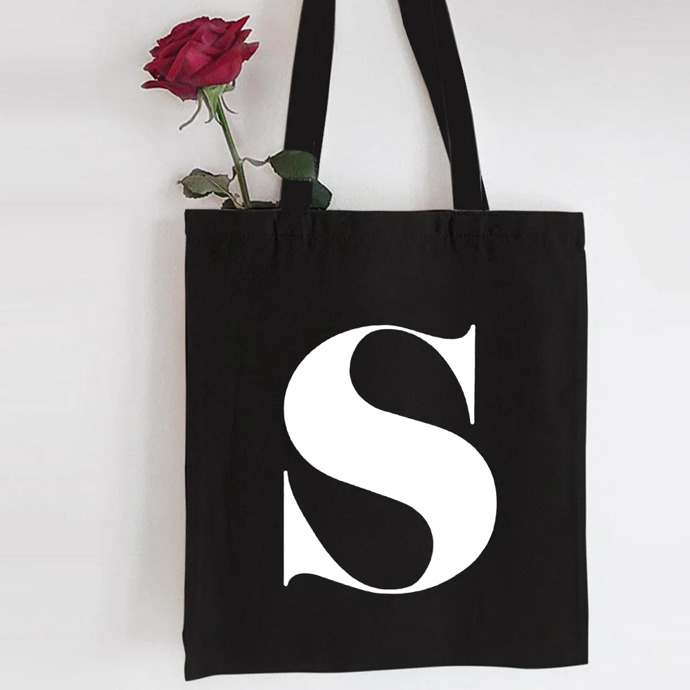 Сумка для покупок с буквами английского алфавита, персонализированная холщовая черная сумка-тоут, вместительная многоразовая Женская сумочка для покупок в стиле Харадзюку