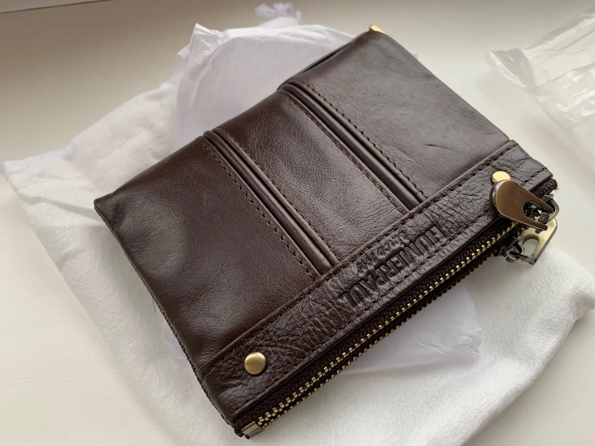 Отличный кошелек. Очень большой плюс данной модели в том, что в отсеке для купюр все цельно прошито и нету отверстия. Поэтому считаю эту модель одной из лучших в магазине. Кошелек приятный наощупь, пахнет кожей. Пришел в фирменном мешочке Humerpaul. Спасибо продавцу за хорошие цены.