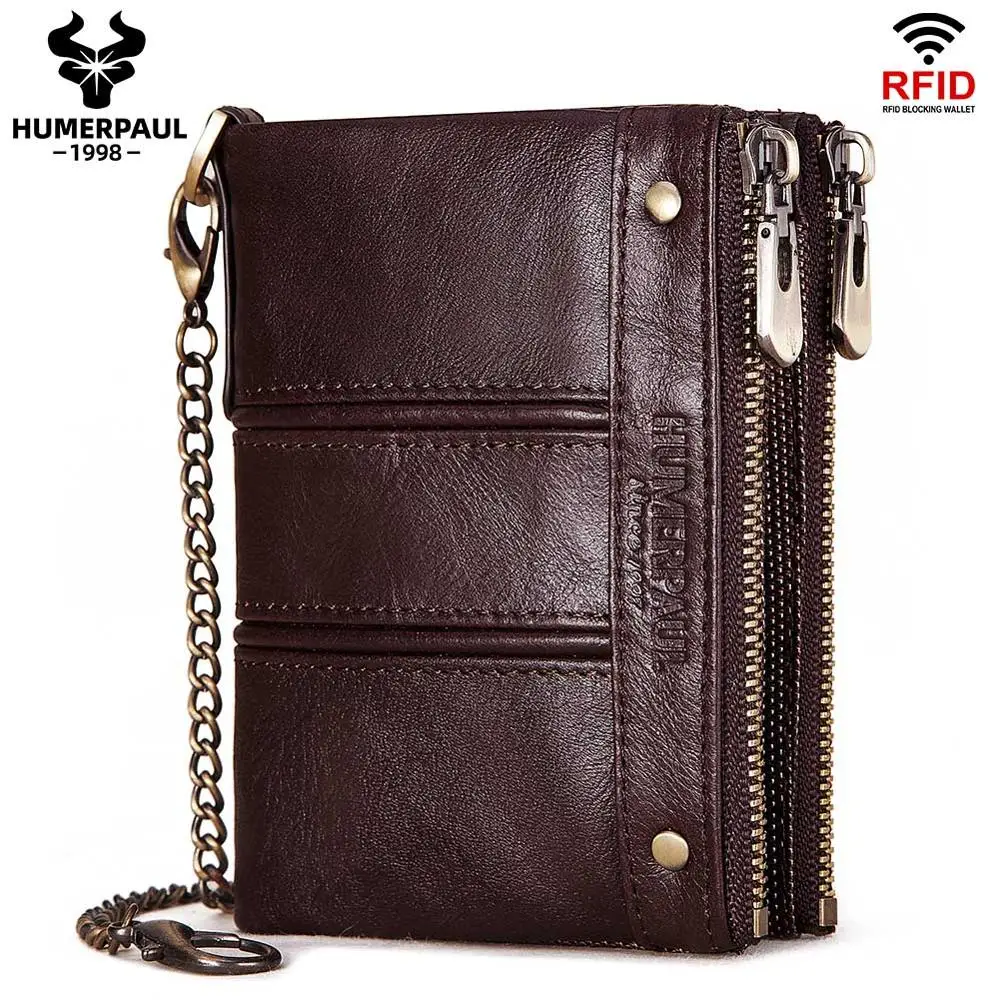 Кошелек мужской из натуральной кожи, с отделением для монет и Rfid-защитой