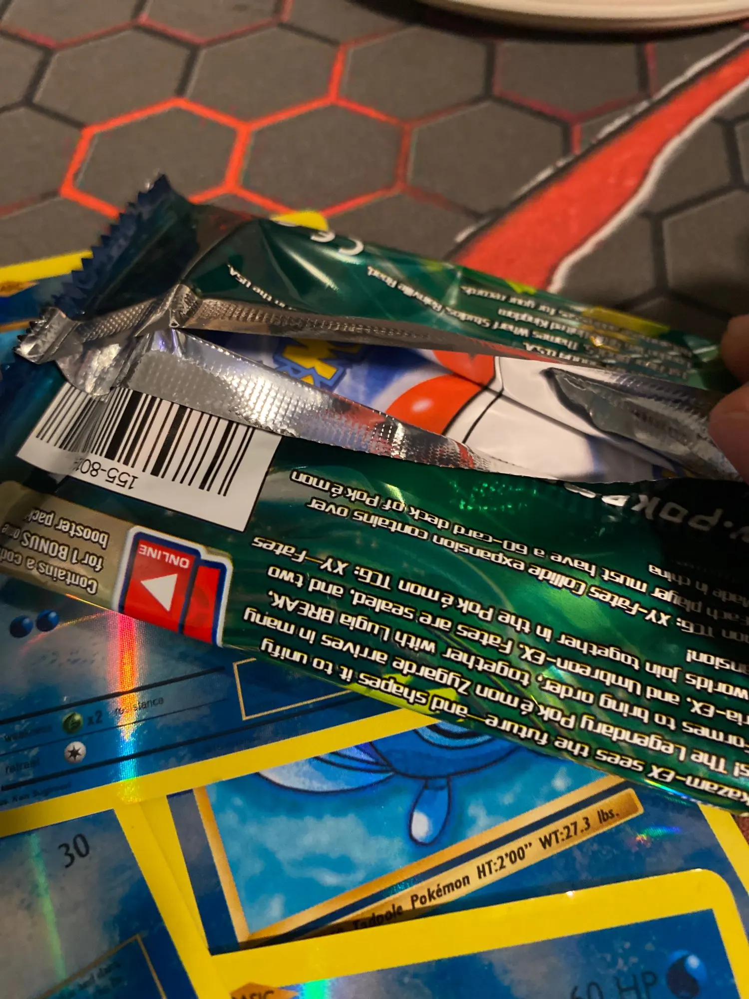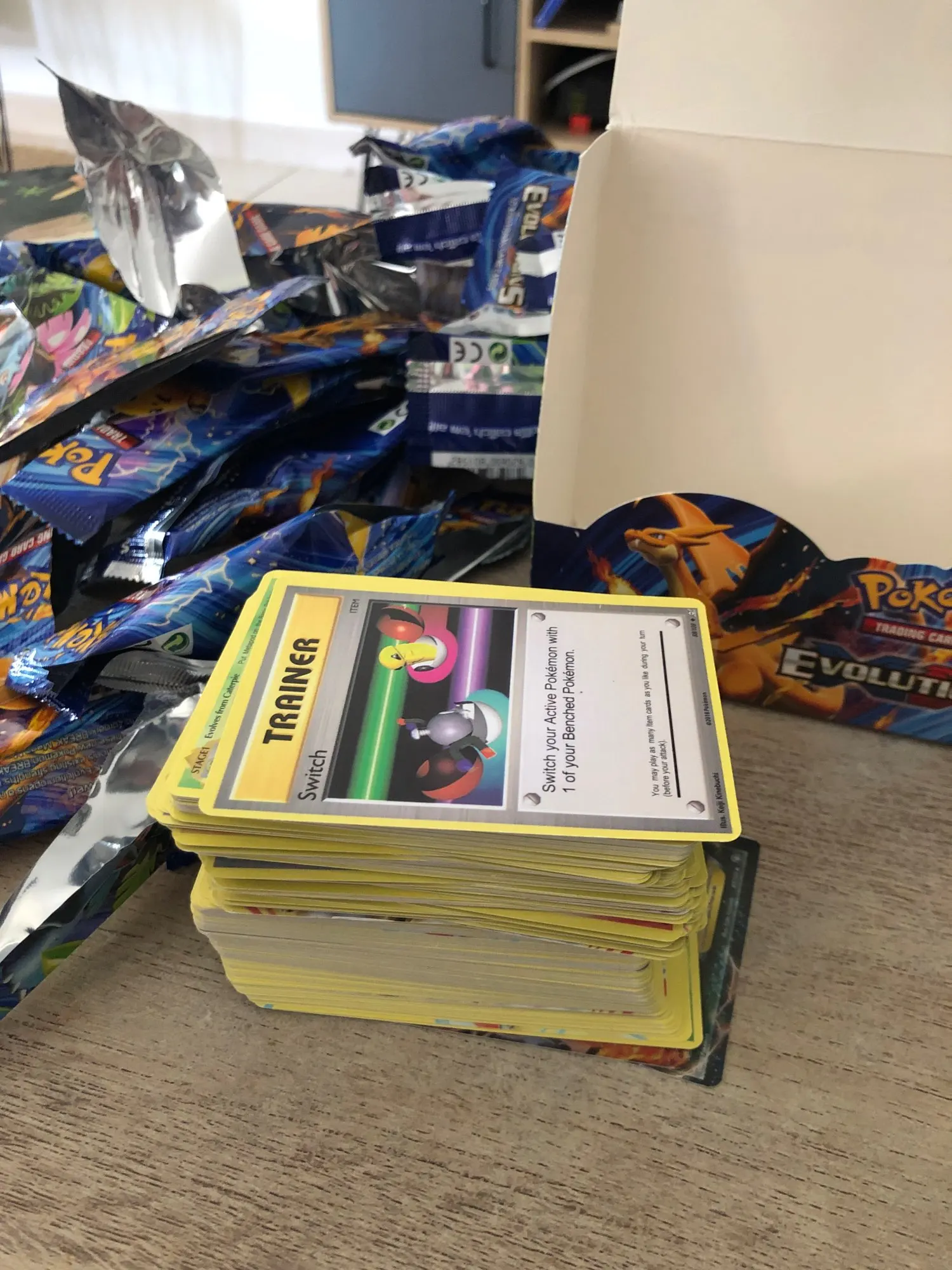 Они прибыли. Коробка выглядит хорошо и пакеты тоже, но когда я их открывал, я очень разочаровался. Я все время рисую ту же карту медленного Бро Холо! Много повторяемых карт и почти каждая вторая карта была повреждена! У Charizard EX неправильное имя! Качество достойное. Я не ожидала слишком многого, но это огорчительно.