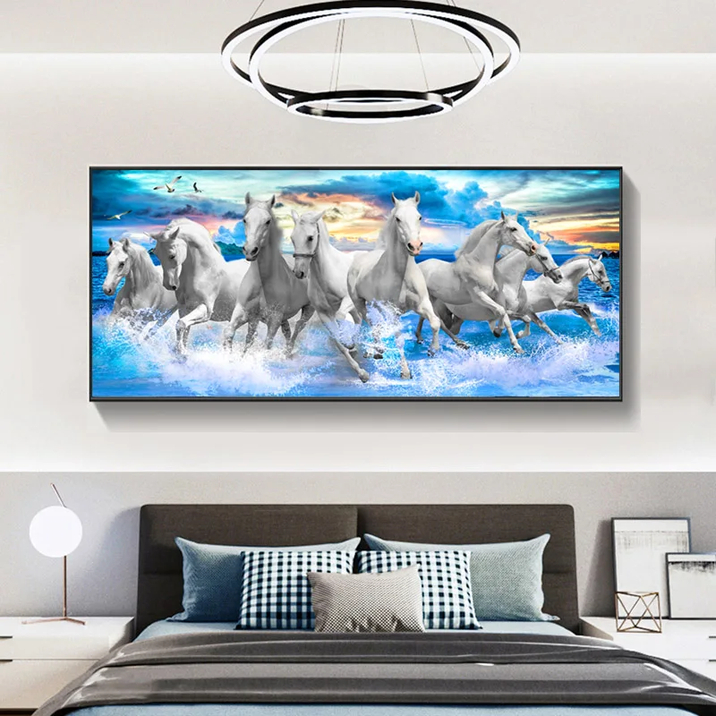 Самоотверженно восемь лошадей, бегущие в море, холст, настенная живопись, картины с животными для гостиной, спальни, Современное украшение для дома