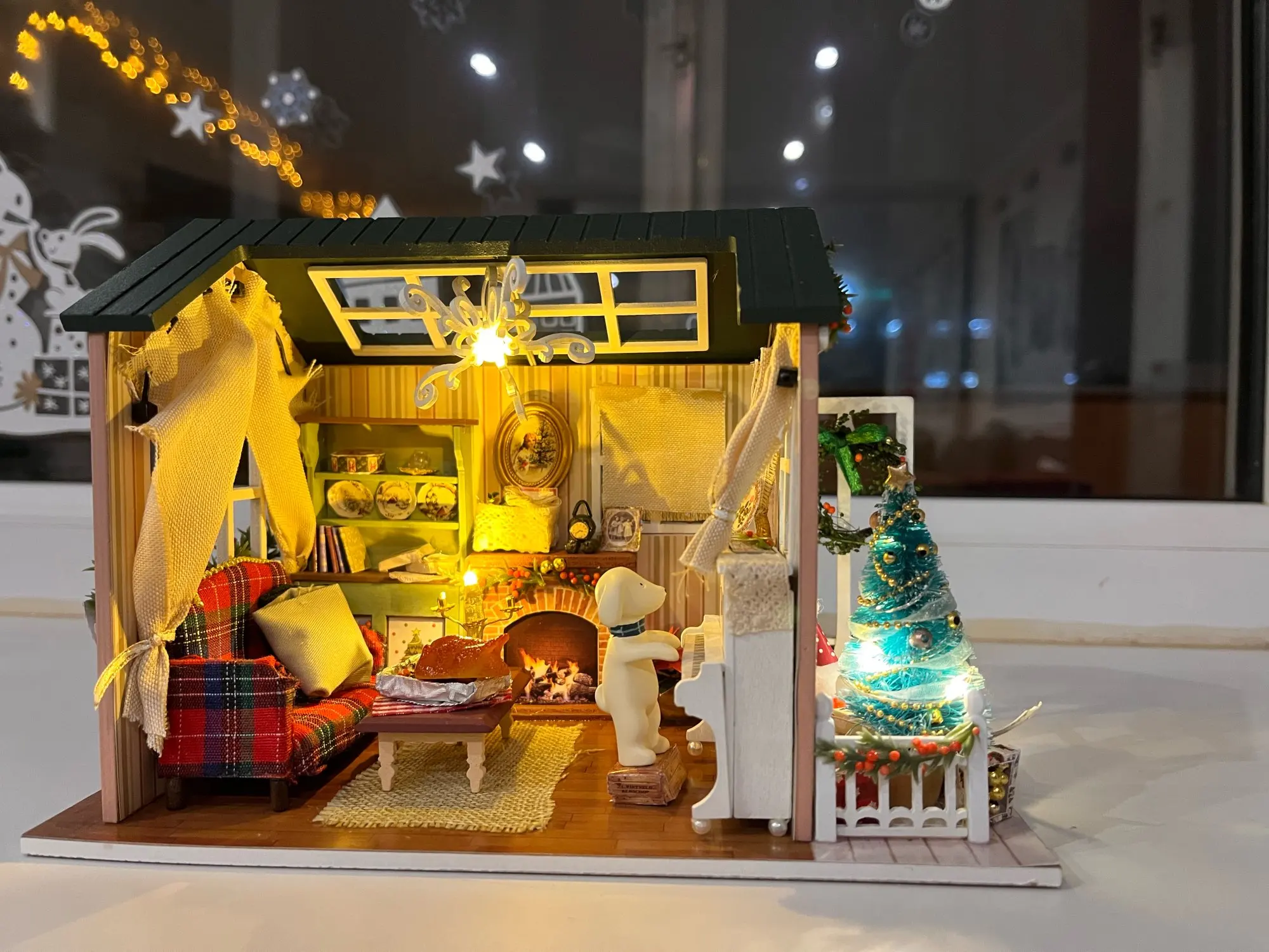 Если вы ищете удовольствие или вы увлекаетесь ремеслами и миниатюрными изображениями, вы не можете пропустить этот миниатюрный кукольный домик «сделай сам», в котором используется довольно реалистичный диван, пианино, окна, шкаф, стол, растения и многие другие части для создания мини-комнаты! Кроме того, этот миниатюрный кукольный домик является идеальным украшением для Рождества!
