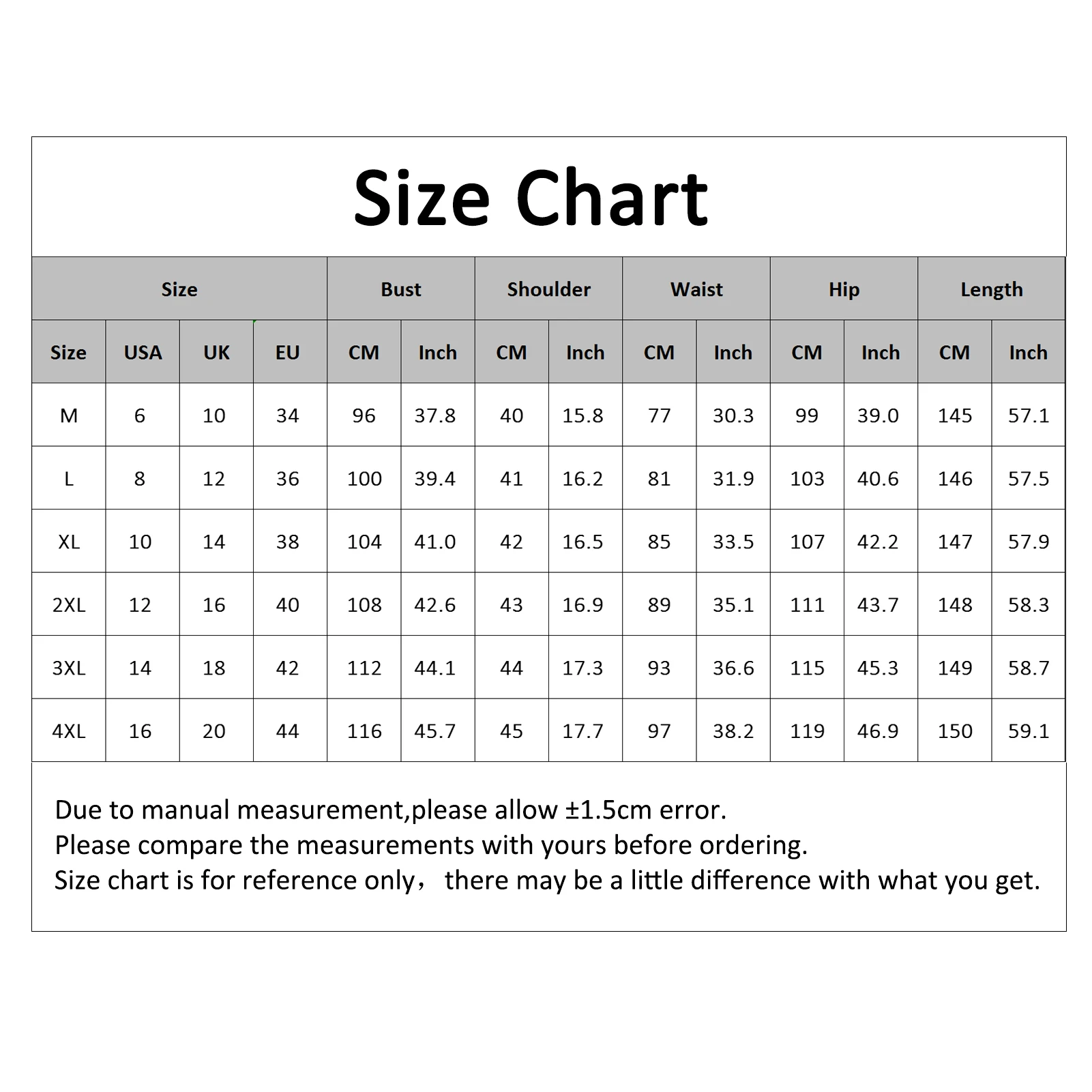 Женский зимний Плюшевый комбинезон, пижама с длинным рукавом, на молнии, с капюшоном, плотный теплый комбинезон Технические характеристики: Имеет длинную молнию, которая позволяет вам легко надевать или снимать этот комбинезон. Этот плюшевый теплый комбинезон обеспечивает полное покрытие вашего тела и сохраняет тепло осенью/зимой. Подходит для отдыха, сна и любых занятий в помещении. Тип: комбинезон Тип размера: Обычный Пол: женщины Материал: вельвет, хлопок Стиль: Повседневный Длина рукава: длинный рукав Уход За Одеждой: ручная стирка Особенности: теплый, с капюшоном, однотонный, застежка-молния Размеры: [Наш Размер M] Бюст: 96 см/37,8 дюйма, талия: 77 см/30,3 дюйма, бедра: 99 см/39 дюймов, Плечи: 40 см/15,7 дюйма, длина: 145 см/57,1 дюйма (прибл.) [Наш Размер L] Бюст: 100 см/39,4 дюйма, Талия: 81 см/31,9 дюйма, бедра: 103 см/40,6 дюйма, Плечи: 41 см/16,1 дюйма, длина: 146 см/57,5 дюйма (прибл.) [Наш Размер XL] Бюст: 104 см/40,9 дюйма, талия: 85 см/33,5 дюйма, бедра: 107 см/42,1 дюйма, Плечи: 42 см/16,5 дюйма, длина: 147 см/57,9 дюйма (прибл.) [Наш Размер 2XL] Бюст: 108 см/42,5 дюйма, Талия: 89 см/35 дюймов, бедра: 111 см/43,7 дюйма, Плечи: 43 см/16,9 дюйма, длина: 148 см/58,3 дюйма (прибл.) [Наш Размер 3XL] Бюст: 112 см/44,1 дюйма, талия: 93 см/36,6 дюйма, бедра: 115 см/45,3 дюйма, Плечи: 44 см/17,3 дюйма, длина: 149 см/58,7 дюйма (прибл.) [Наш Размер 4XL] Бюст: 116 см/45,7 дюйма, талия: 97 см/38,2 дюйма, бедра: 119 см/46,9 дюйма, Плечи: 45 см/17,7 дюйма, длина: 150 см/59,1 дюйма (прибл.) Примечания: Пожалуйста, обратитесь к нашей таблице размеров и выберите правильный размер. Благодаря светильник и экрана Цвет Товара может быть s светильник ly отличается из-за характеристик монитора компьютера. Посылка входит: 1 комбинезон