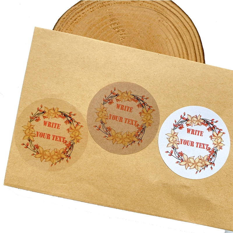 100 шт. самодельные наклейки с логотипом на заказ Этикетка из воловьей кожи прозрачный белый цвет круглый клиент любой размер