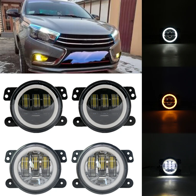 2 шт. 4 дюйма круглые светодиодные противотуманные фары 30 Вт 6000 К Белый Halo Кольцо DRL внедорожные противотуманные лампы для Jeep Wrangler JK TJ LJ Grand Cherokee