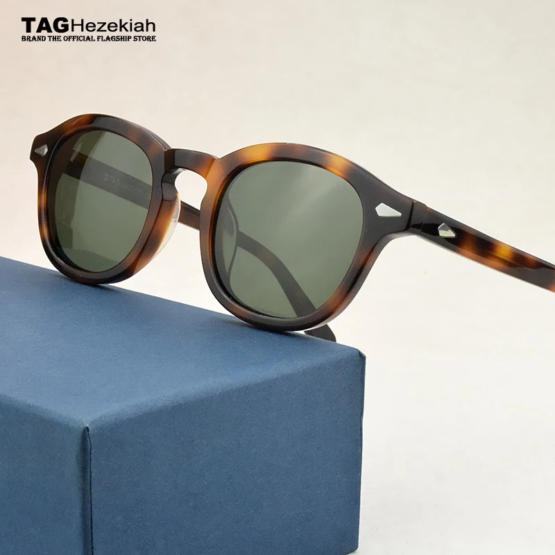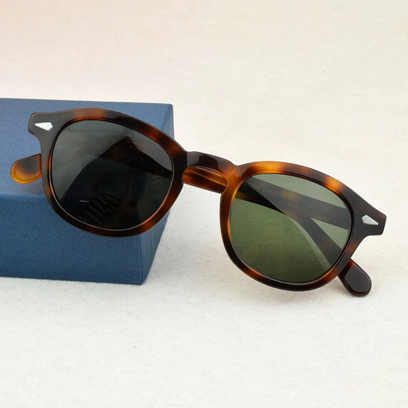Очки солнцезащитные Мужские поляризационные, винтажные круглые солнечные очки UV400, для вождения, в стиле ретро, с ацетатными линзами, 2020