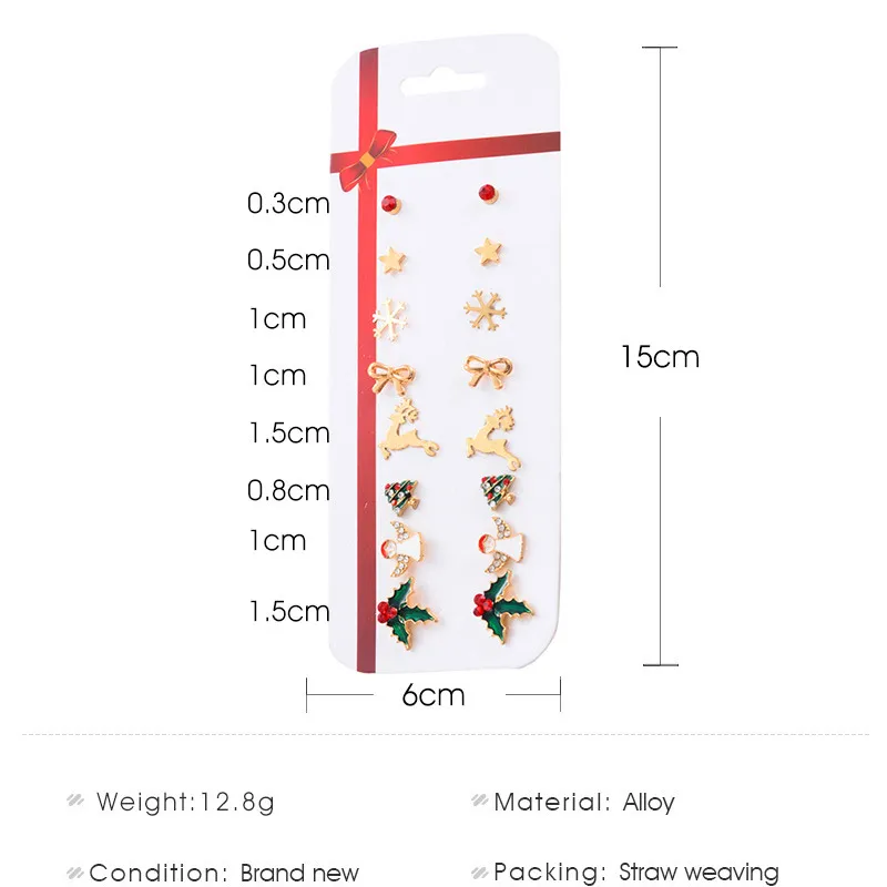 Новый креативный Комплект рождественских серег Санта-Клаус Снеговик Рождественская елка Лось серьги-гвоздики простой 8 штук праздничный подарок для девочек