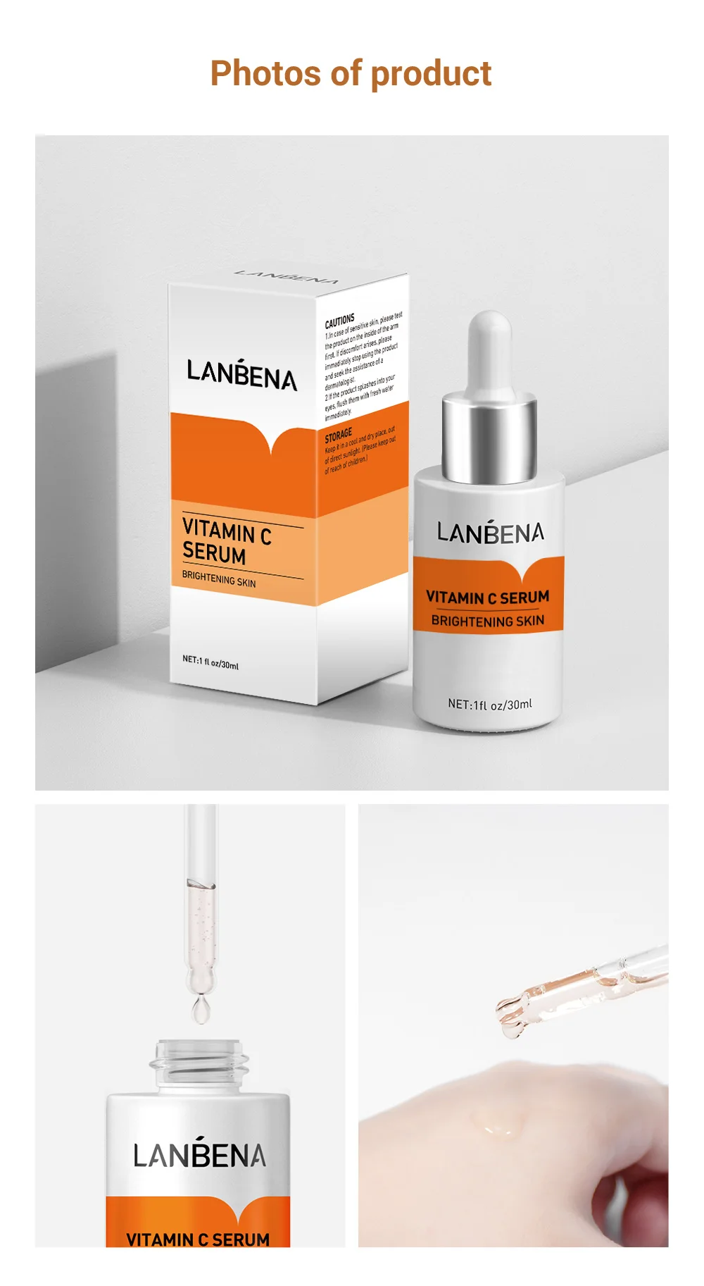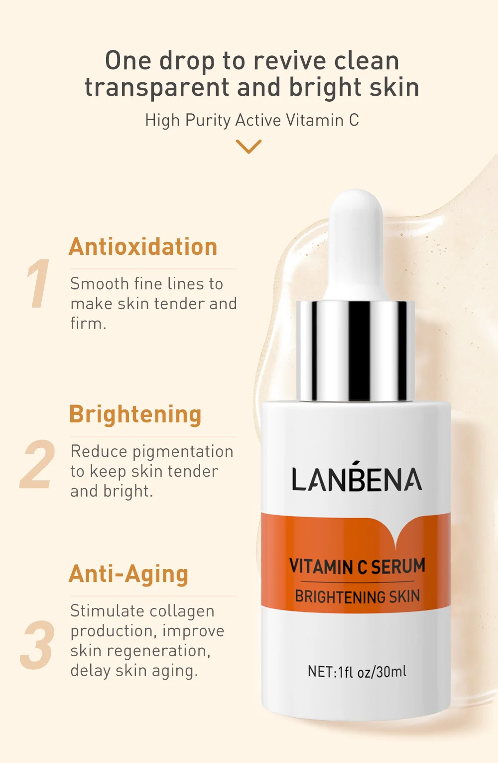 Отбеливающая сыворотка LANBENA с витамином С, для устранения темных точек, против старения, для улучшения тусклости, эссенция для кожи осветления кожи, уход за лицом, 30 мл