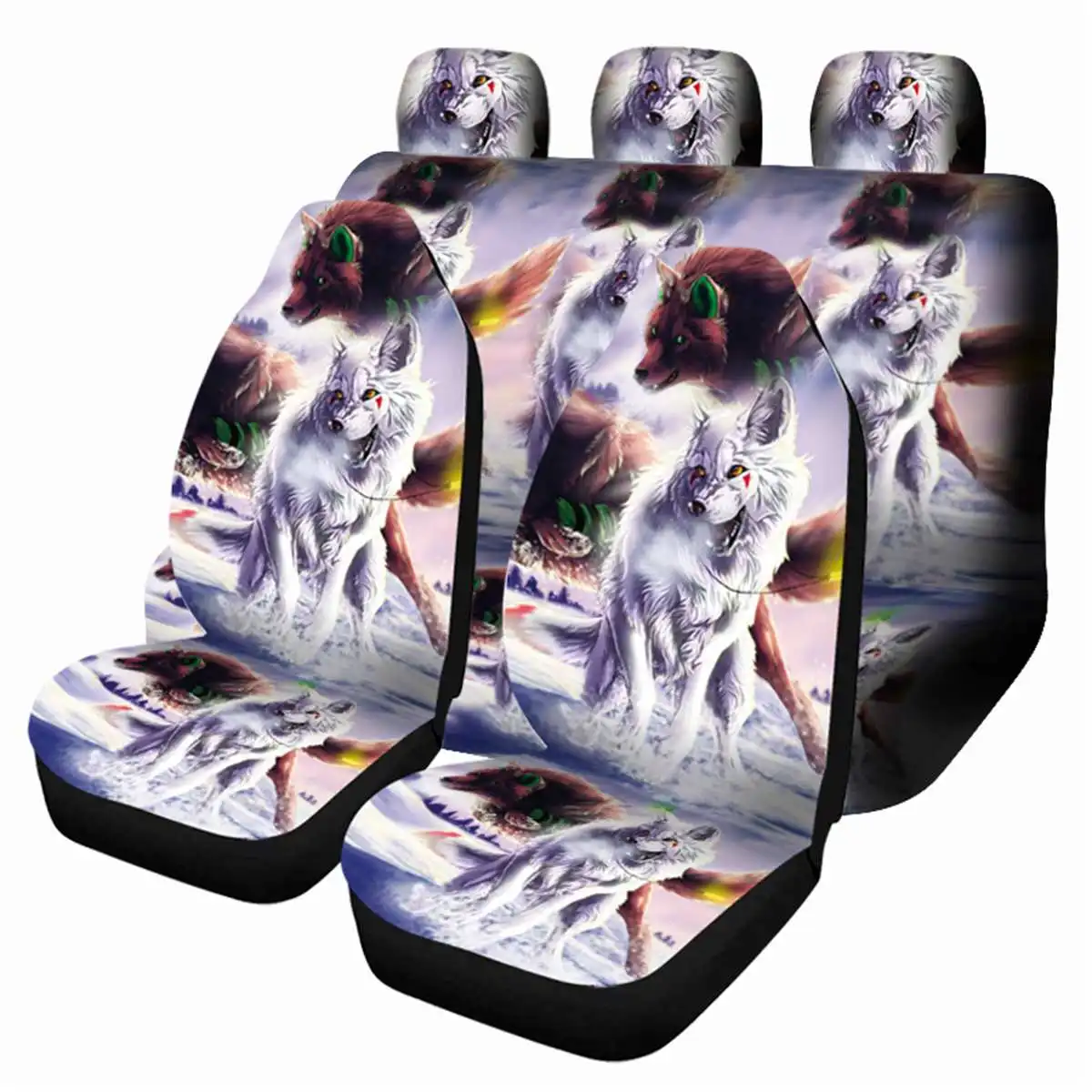 127 шт. Универсальный защитный чехол для автомобильного сиденья, передний и задний 3D чехол для подушки с изображением животного волка, полный комплект, чехол для автомобильной подушки для фургона, грузовика