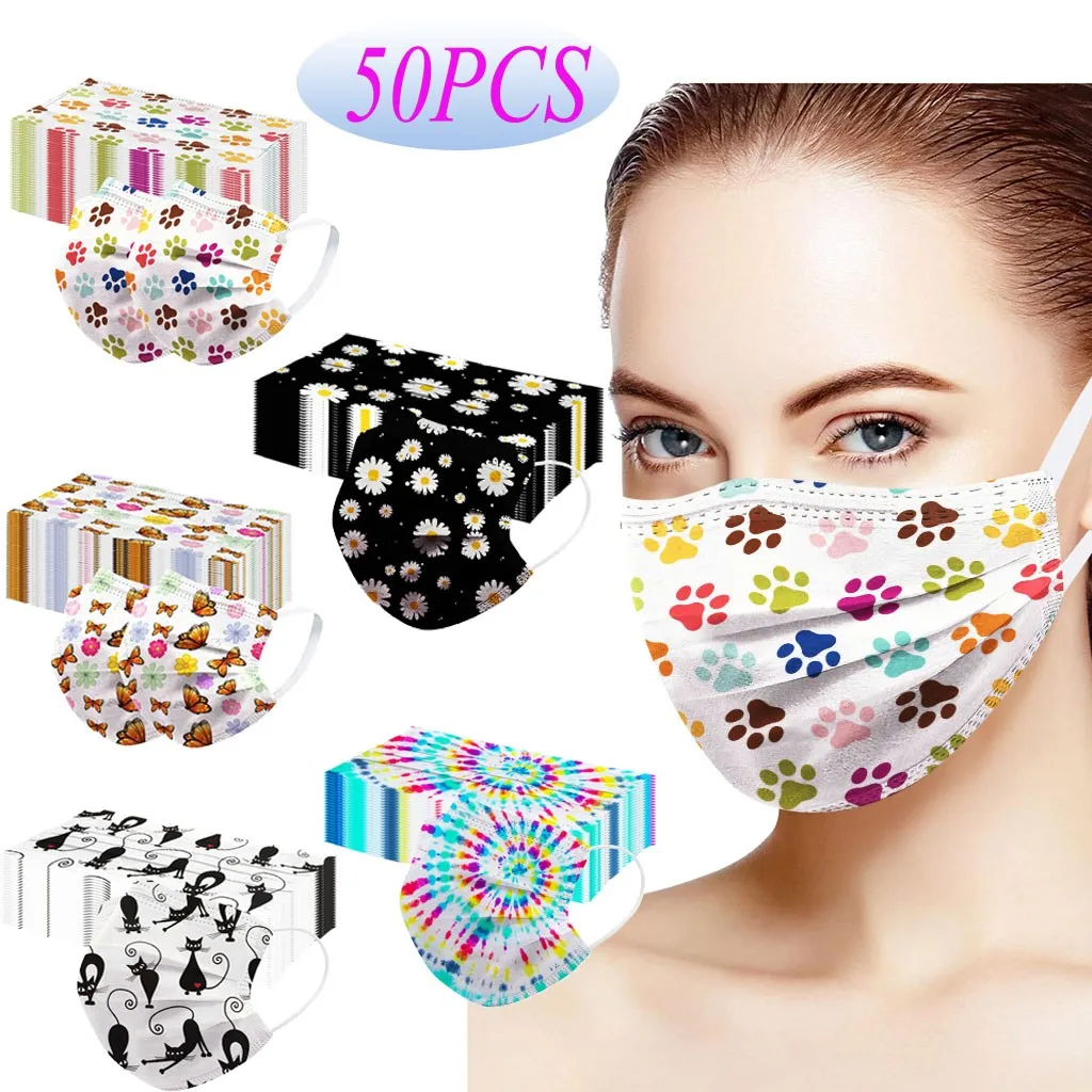 Мягкие маски унисекс с принтом для взрослых 3-слойные маски для лица 50 шт.