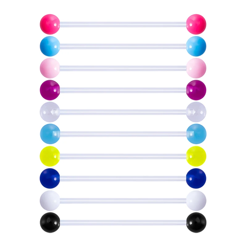 10-50 шт. акриловые бусины промышленный серьги-гантели из нержавеющей стали, длинный стержня уха кольцо Бар пупка, для женщин, ювелирное изделие для тела, 14G 38 мм