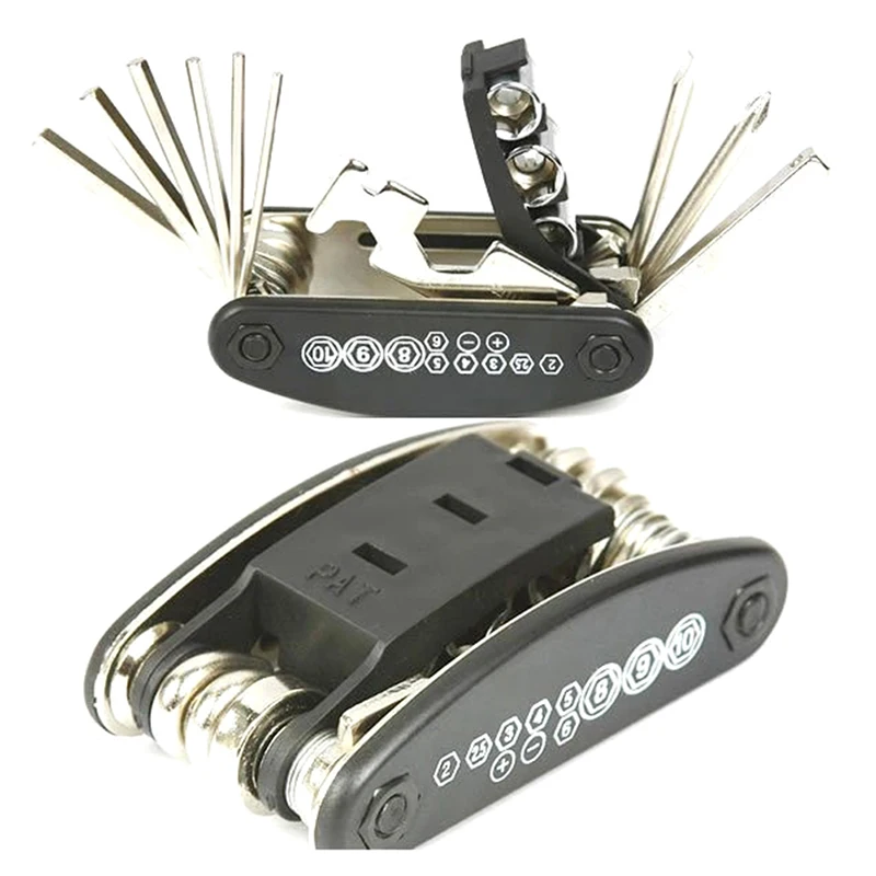 Особенности:100% Новый брендЭтот многофункциональный велосипедный инструмент является портативным, легким и идеальным аксессуаром для общего ремонта велосипеда. Обязательный инструмент для регулярного обслуживания и аварийного ремонта для любителей цикла.Размер: Приблизительный 9x 4.4x 3,0 смЦвет: как на картинке16 в 1 Многофункциональный набор инструментов для ремонта велосипедаВысокое качество, прочный и полностью функциональныйЛегко носить и хранитьШестигранное гнездо: 2 мм/2,5 мм/3 мм/4 мм/5 мм/6 ммТорцевой ключ: 8 мм/9 мм/10 ммНаружный шестигранный ключ: 8 мм/10 мм/15 ммКольцевой ключ: 14 ммШлицевая и крестовая отверткаУпаковка включает:1x15 в 1 Набор инструментов для ремонта велосипеда