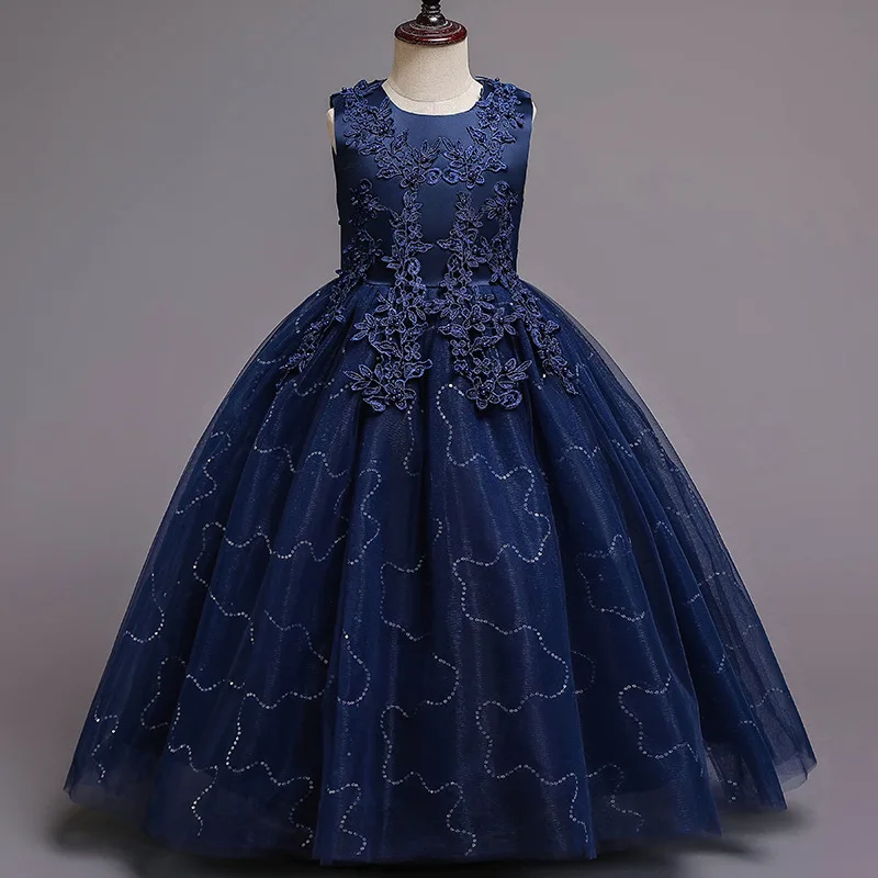 Кружевное длинное платье принцессы, без рукавов, на Возраст 4-14 лет