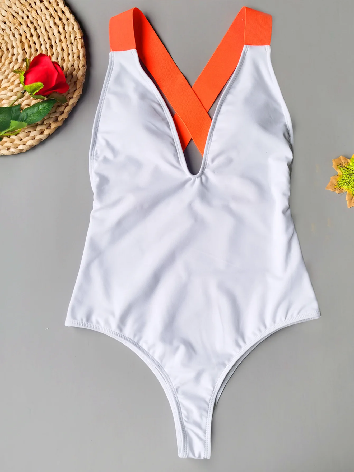 Женский слитный купальник с открытой спиной и перекрестными бретеля...