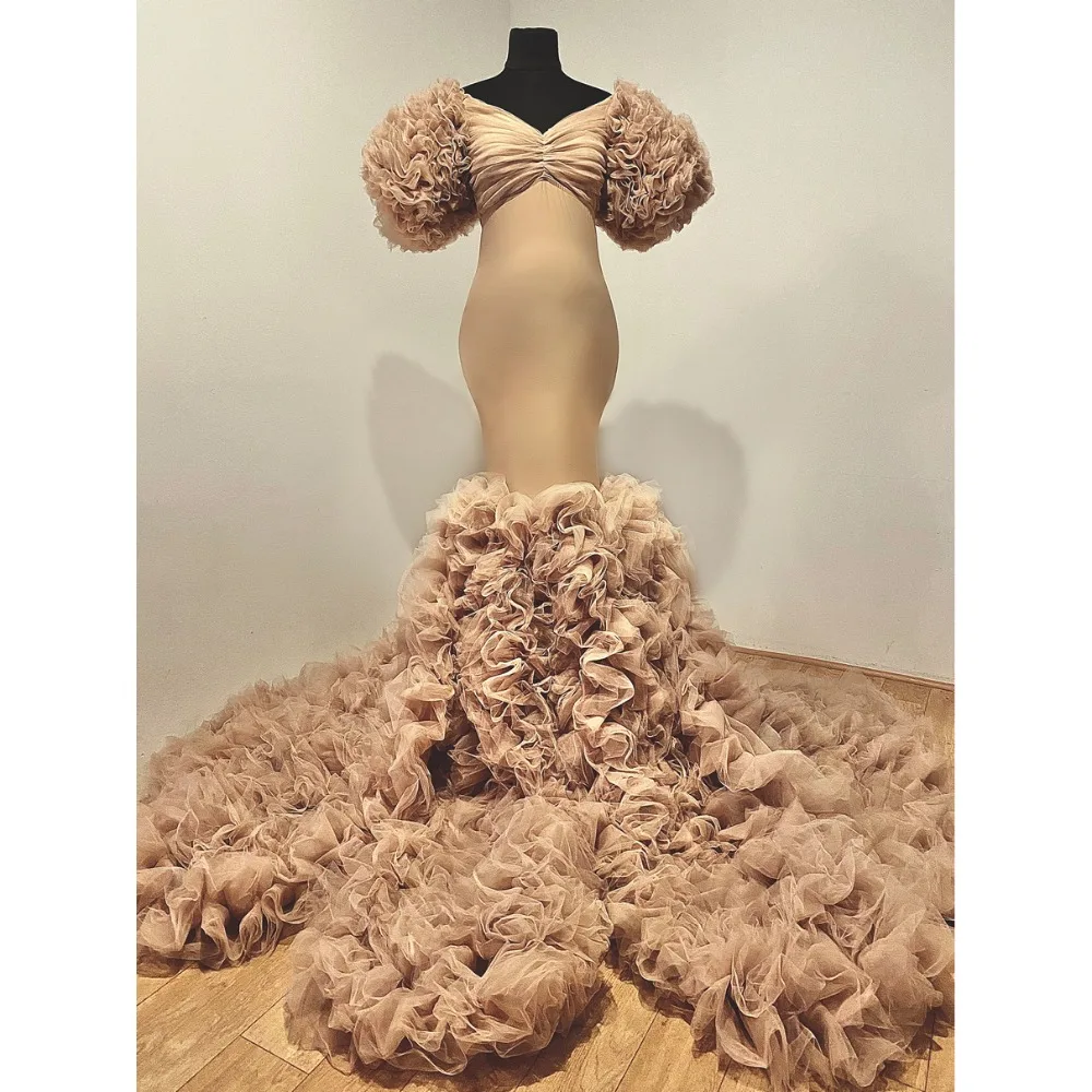 Платья для беременных элегантные Экстра пышные тюлевые рукава пикантные русалки Длинные шампанские многослойные платья для выпускного вечера