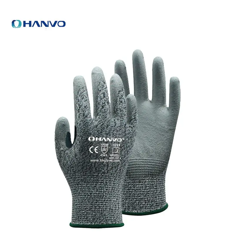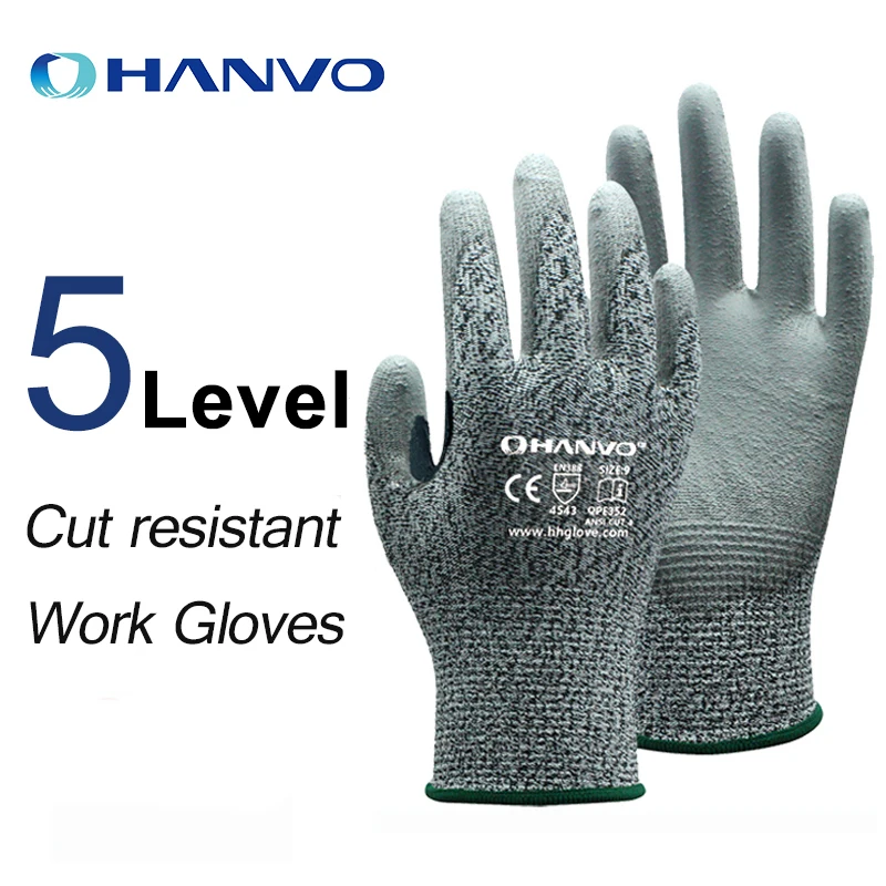 Защитные рабочие перчатки Hanvo, HPPE 13 калибра + стекловолокно, полиуретан, с покрытием ладони, 10 пар